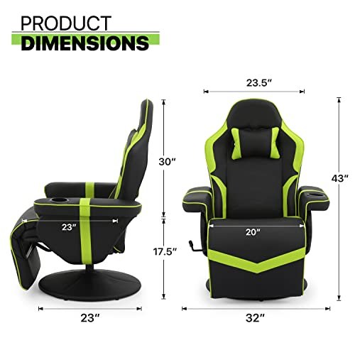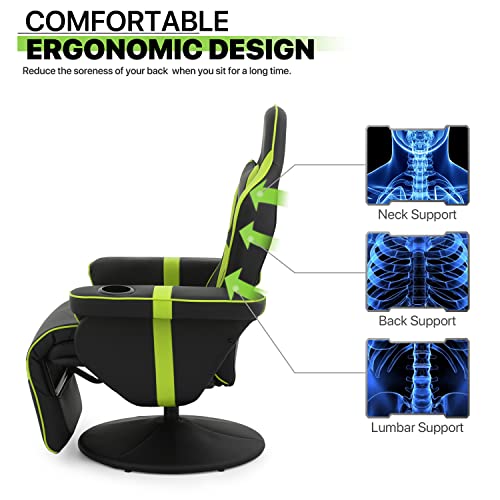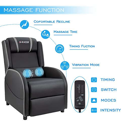 POWERSTONE Gaming Recliner Massage Gaming Chair with Footrest Ergonomic PU Leather Single Sofa with Cup Holder Headrest and Side Pouch, Adjustable Living Room Chair Seating, Black