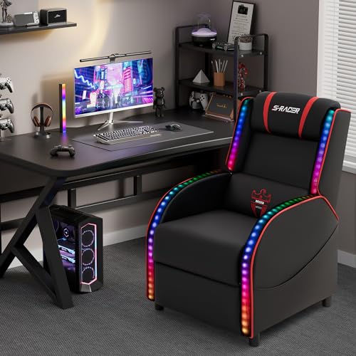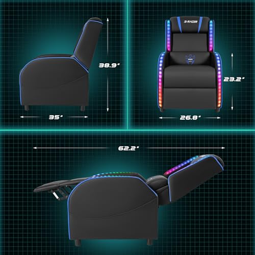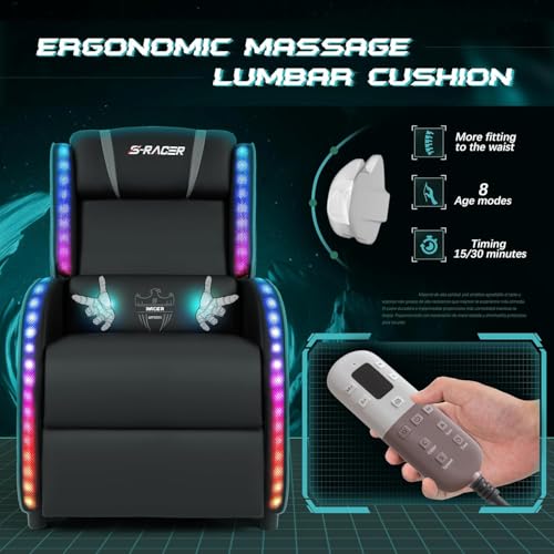 Homall LED Gaming Massage Recliner Chair Racing Style Single Living Room Sofa Comfortable Ergonomic Home Theater Seating (Grey)