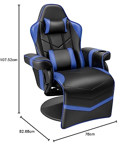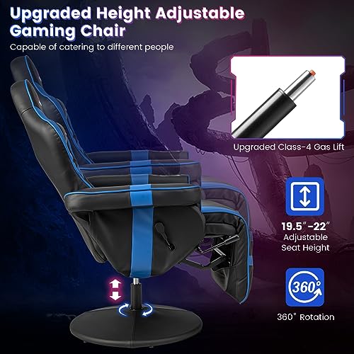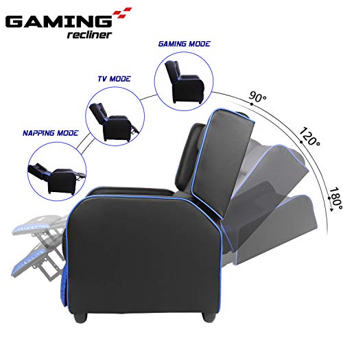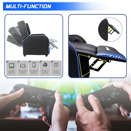 Gaming Recliner Adjustable Massage Gaming Chair with Cup Holder Footrest Ergonomic Single Sofa Living Room Home Theater Seating with Side Pouch, Blue