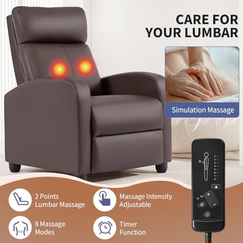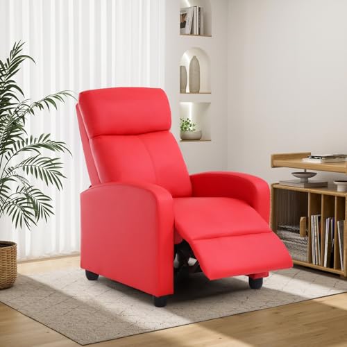 Devoko Massage Gaming Recliner Chair PU Leather Home Theater Seating Single Modern Living Room Sofa Recliners (Red)