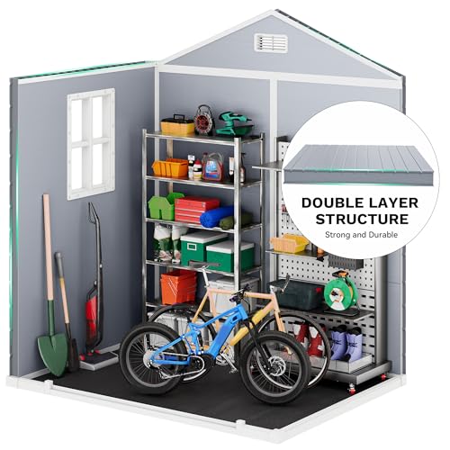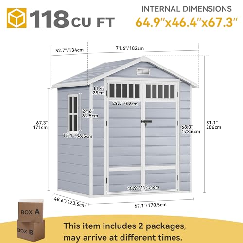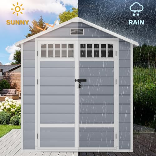 Aoxun 6 x 8 FT Outdoor Storage Shed with Window, Resin Shed with Floor & Lockable Doors, Garden Shed Waterproof Plastic Tool Shed with Sloped Roof for Backyard, Garden, Patio, Lawn, Grey