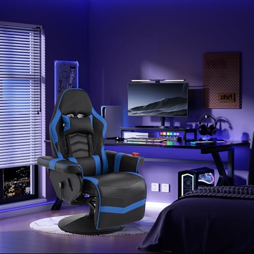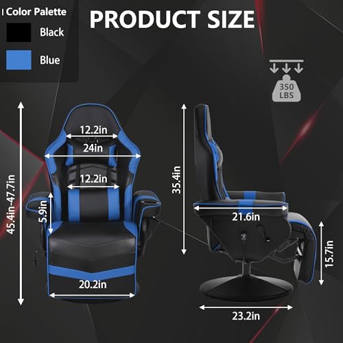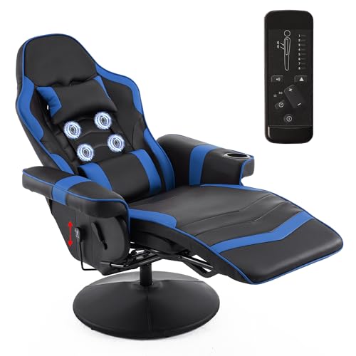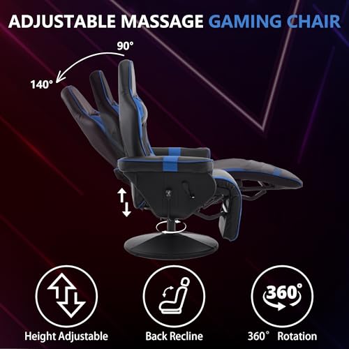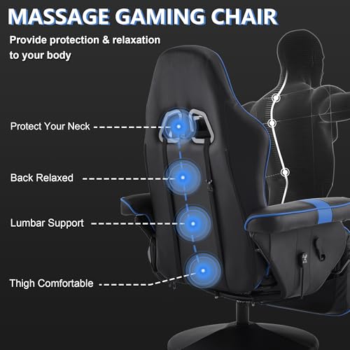 Gaming Chair with Massage for Adults, Comfy Reclining Gaming Chair with Footrest, Adjustable Backrest and Cup Holder, Black Blue