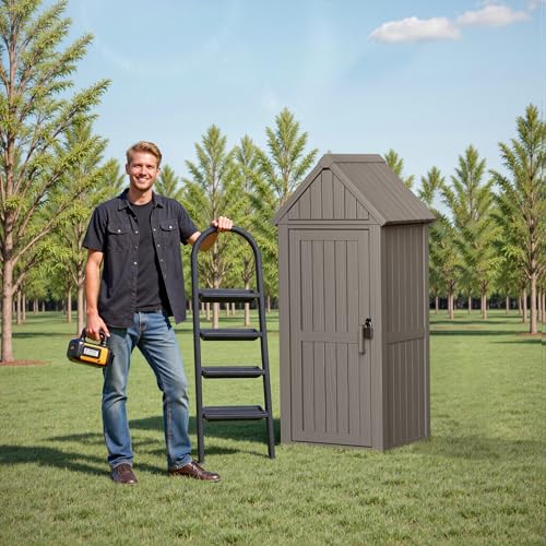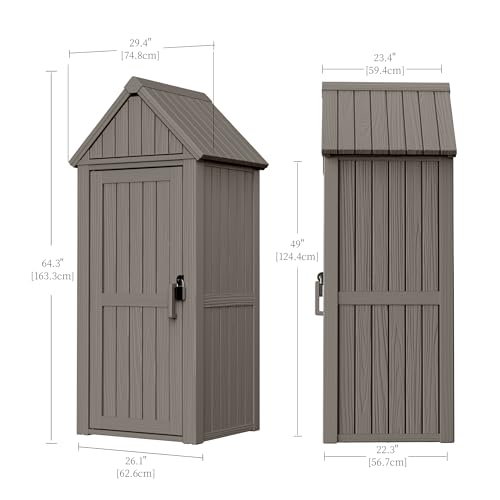 Outdoor Storage Shed,Resin Storage Cabinet with Lockable Door,Removable Shelves,Reinforced Floor,Durable and Weatherproof Shed for Backyard Garden Patio Lawn(Grey)