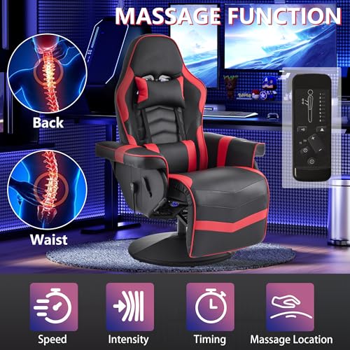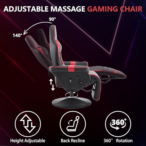 Goplus Massage Gaming Recliner Chair, Racing Style PU Leather Single Recliner Sofa with Footrest, Adjustable Modern Living Room Recliners, Ergonomic Home Theater Recliner Seat