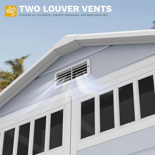 Patiowell 8 x 12 FT Plastic Outdoor Storage Shed with Floor, Resin Shed with Window and Lockable Door for Garden, Backyard, Tool Storage Use, Easy to Install in Beige (Kick-it Shed)