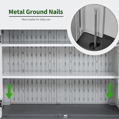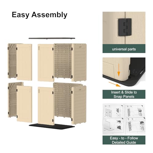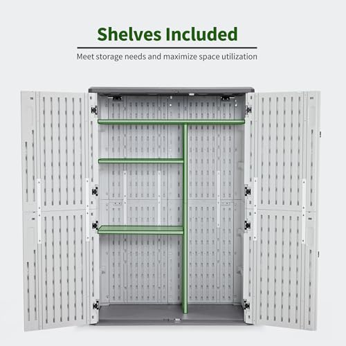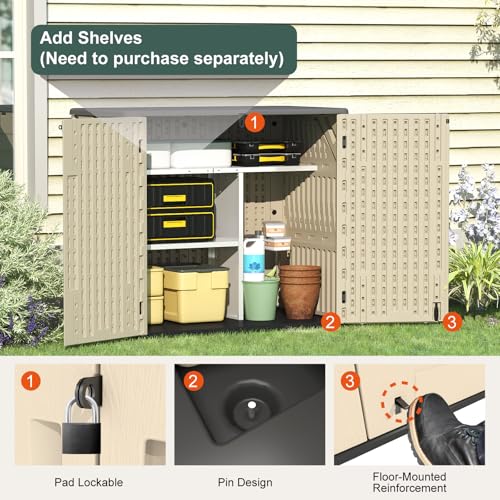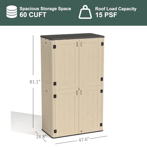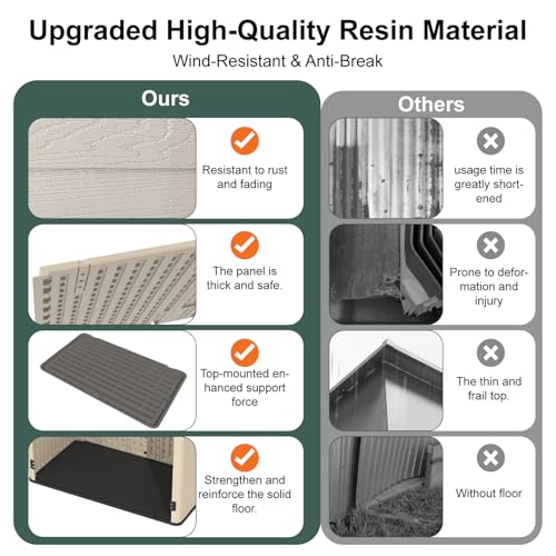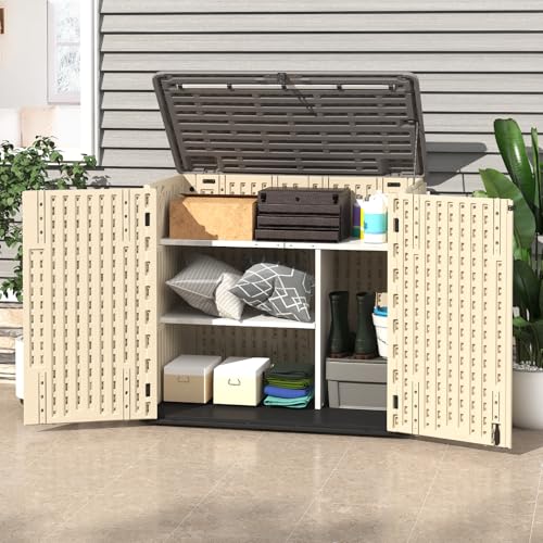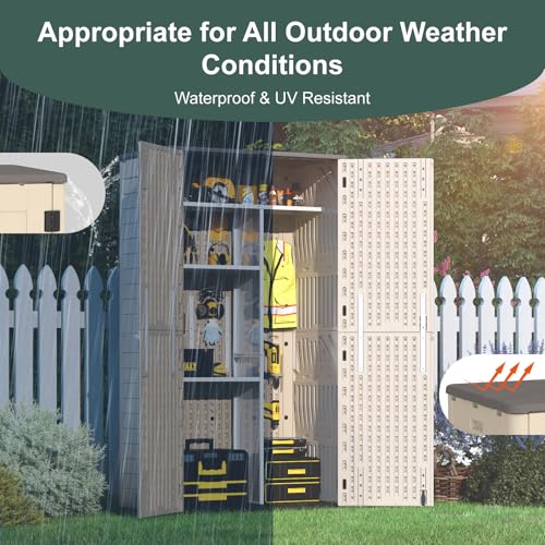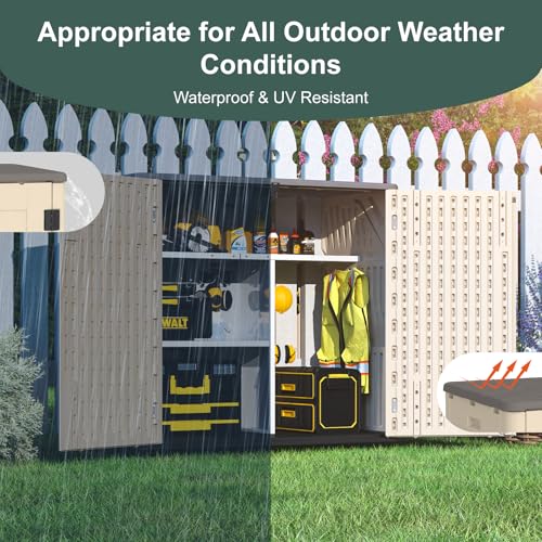 Outdoor Storage Shed with Lock, Waterproof Resin Garden Tool Shed, Heavy-Duty Weather-Resistant Cabinet for Patio, Backyard, or Garage(New Light Brown)