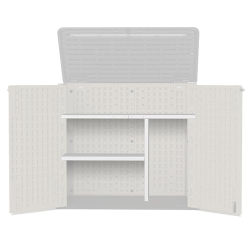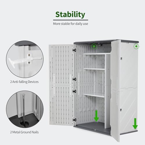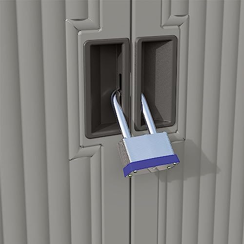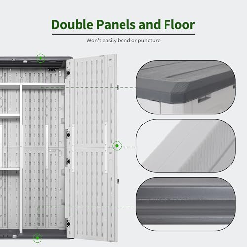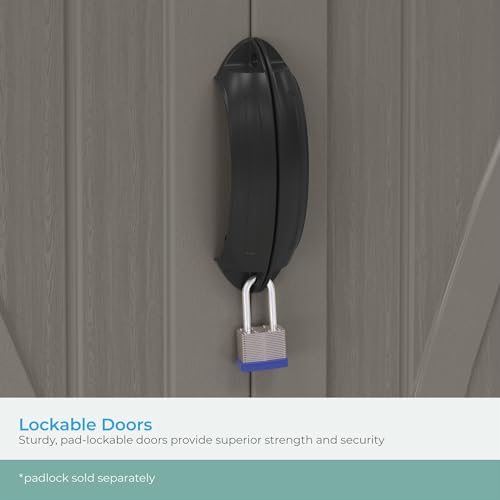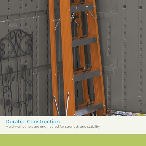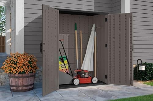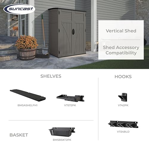 Suncast 54 Cubic Ft. Vertical Resin Outdoor Storage Shed with Lockable Double Doors, Weather-Resistant Multi-Wall Panels, Customizable Shelving, Stoney, Made in the USA