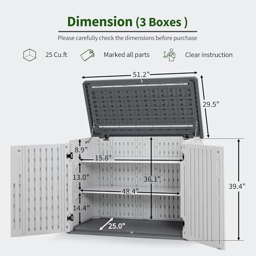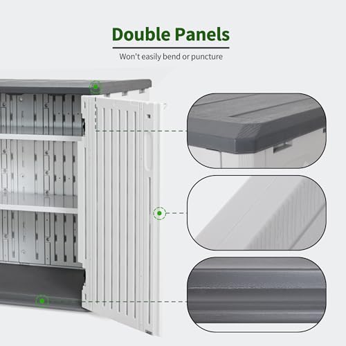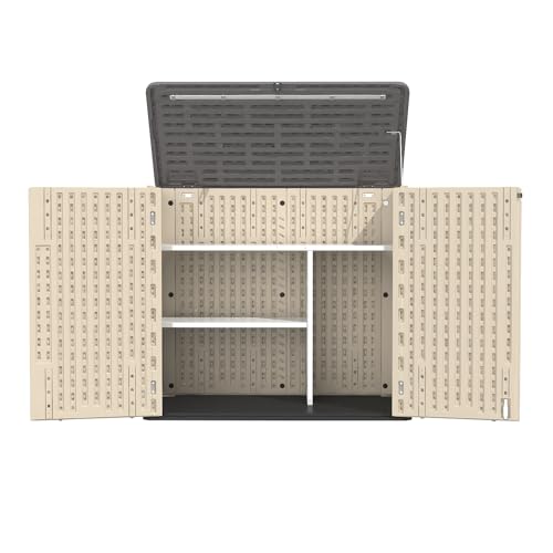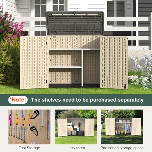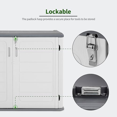 Devoko Resin Outdoor Storage Shed 34 Cu Ft Horizontal Outdoor Storage Cabinet Waterproof Patio Tools Storage Box for Sofa Cushion, Lawn Mower and Garbage Cans