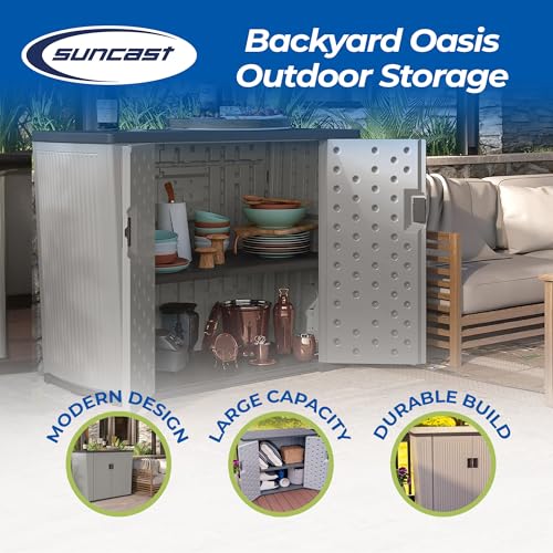 Suncast Outdoor Storage Shed for Patio and Garden, Backyard Oasis, 130 Gallon, Dove Gray
