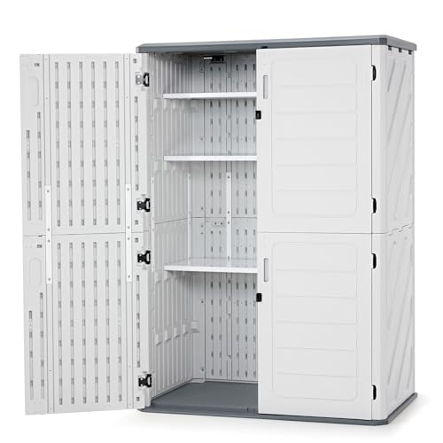 Macrout Plastic Storage Shed 4.3 x 2.5 ft, Waterproof Outdoor Storage Cabinet with Floor, Resin Shed for Garden and Patio (Medium)