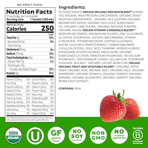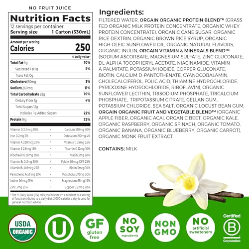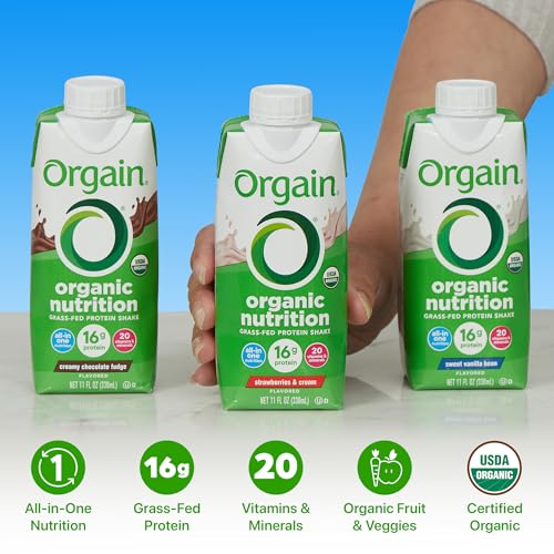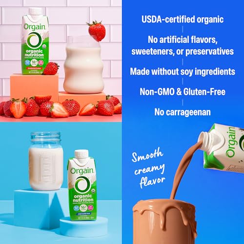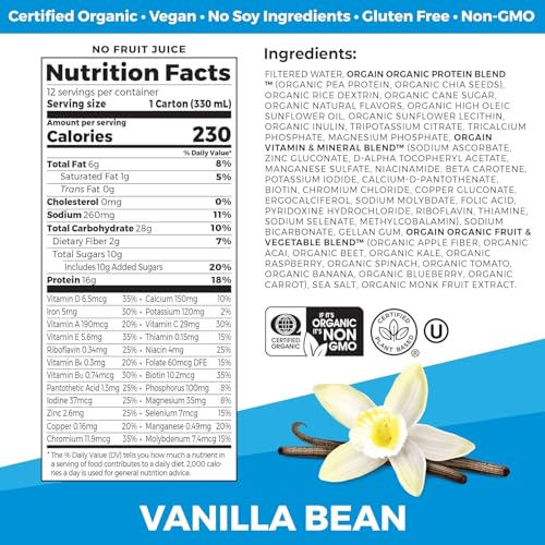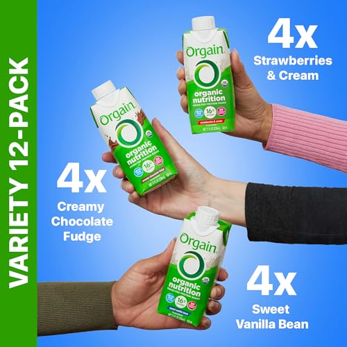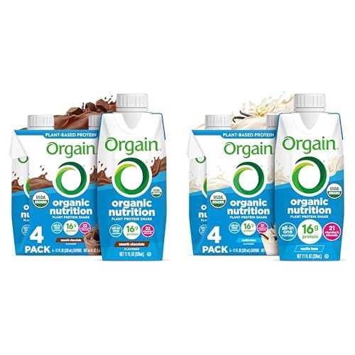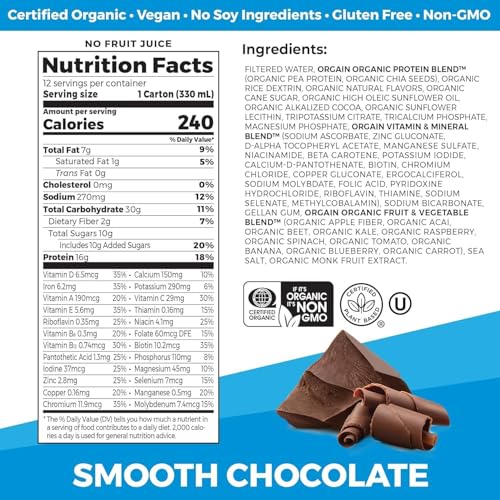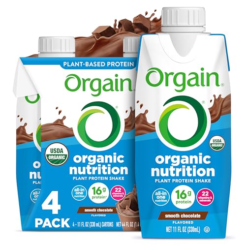 Orgain Organic Nutritional Vegan Protein Shake, Smooth Chocolate - 16g Plant Based Protein, Meal Replacement, 22 Vitamins & Minerals, Fruits & Vegetables, Gluten Free, Non-GMO, 11 Fl Oz (Pack of 12)