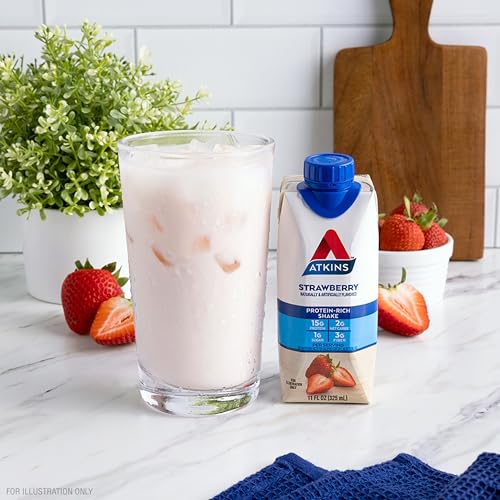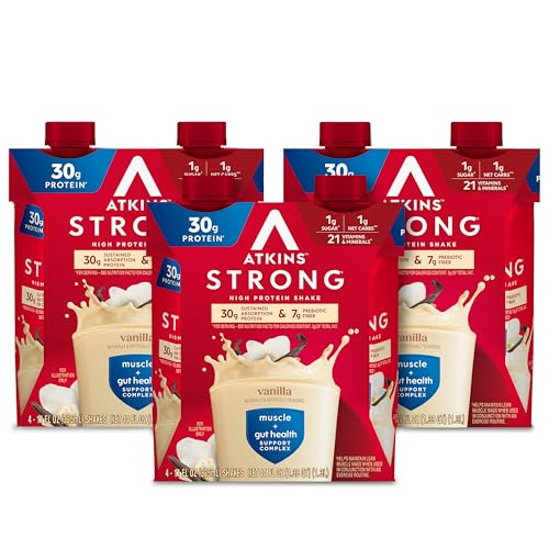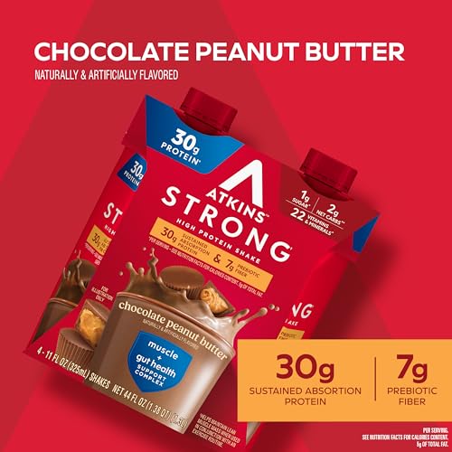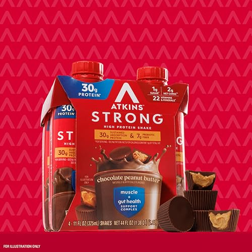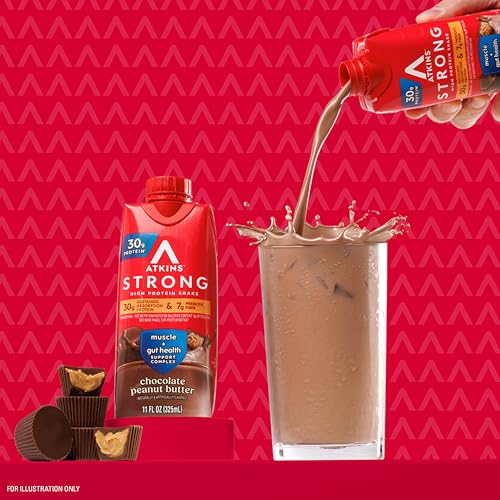 Atkins Strong High Protein Shake, Milk Chocolate Flavored, 30g Protein, Low Carb and Low Sugar Shake, Keto Friendly, Gluten Free, Muscle and Gut Health Support Complex, 12 Count