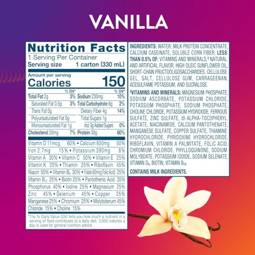 Vanilla Nutrition Shake | 30g Protein, 1g Sugar | Nutrition Support for Muscle Health During Weight Loss | 12 Pack