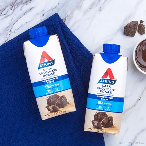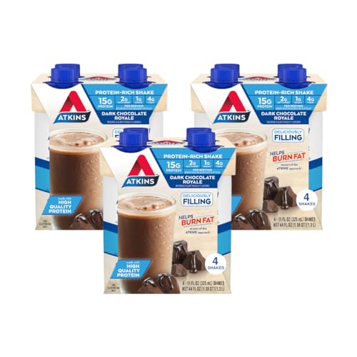 Atkins Dark Chocolate Royale Protein Shake, High Protein Shakes, Low Glycemic, Low Carb and Low Sugar Chocolate Flavored Protein Shakes, Keto Friendly, 12 Count