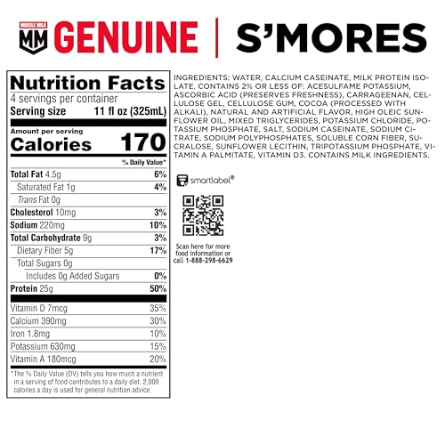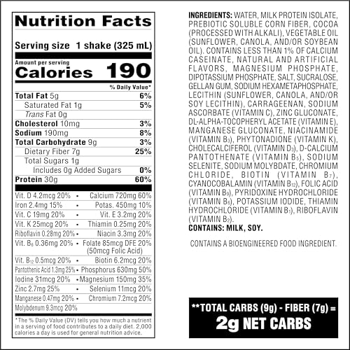 Muscle Milk Zero Protein Shake, Chocolate,20g Protein, Zero Sugar, 100 Calories, Calcium, Vitamins A, C & D, 4g Fiber, Energizing Snack, Workout Recovery, Packaging May Vary,11.16 Fl Oz (Pack of 12)