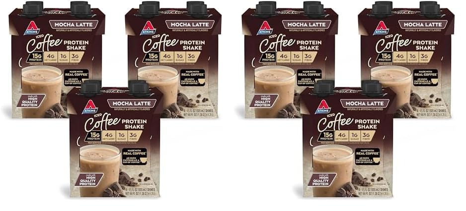 Atkins Mocha Latte Iced Coffee Flavored Protein Shake, High Protein, Low Glycemic, Low Carb and Low Sugar Shakes, Keto-Friendly, 12 Pack