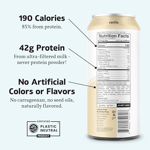 Orgain Clean Protein Shake, Grass Fed Dairy, Vanilla Bean - 20g Whey High Protein, Kosher, Ready to Drink, Low Net Carbs, Gluten Free, No Soy Ingredients, 11 Fl Oz (Pack of 12)