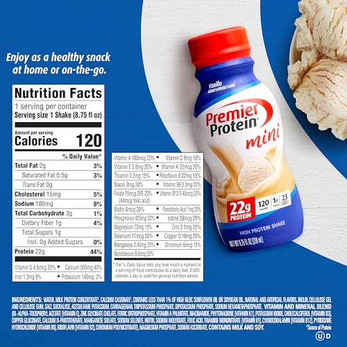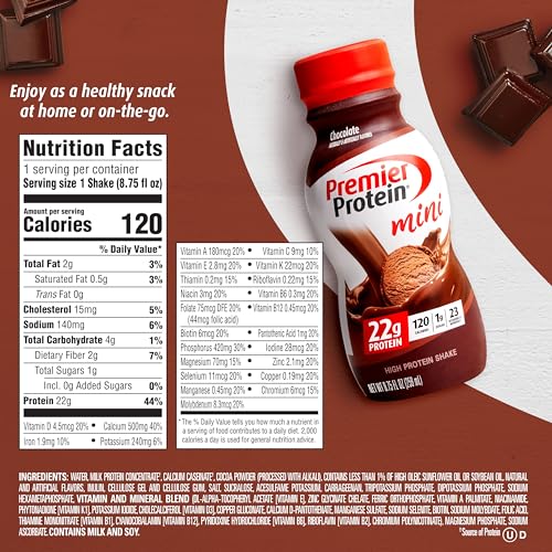 Premier Protein Shake MINIs, Chocolate, 22g Protein, 120 Calories, 1g Sugar, 8.75fl oz, Pack of 12