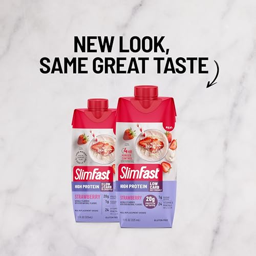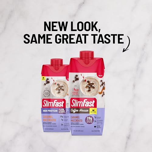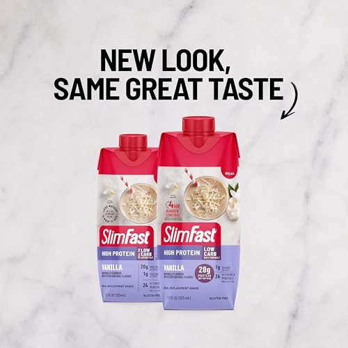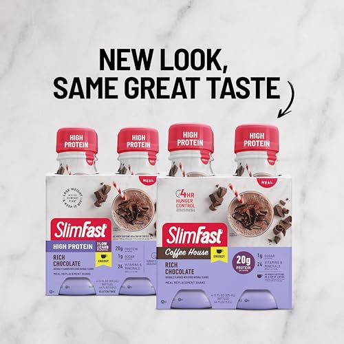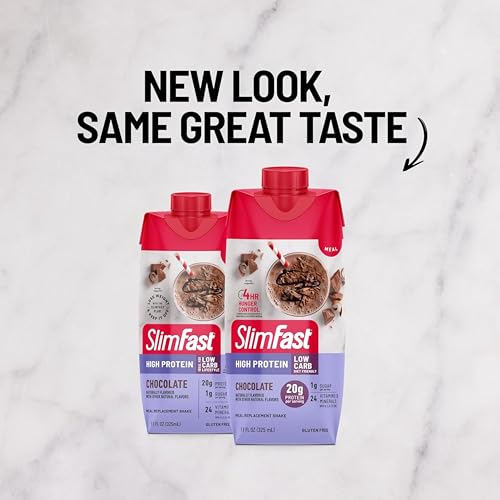 SlimFast Protein Shake, Chocolate- 20g Protein, Meal Replacement Shake Ready to Drink, High Protein with Low Carb and Low Sugar, 24 Vitamins and Minerals, 12 Count (Pack of 1) (Packaging May Vary)