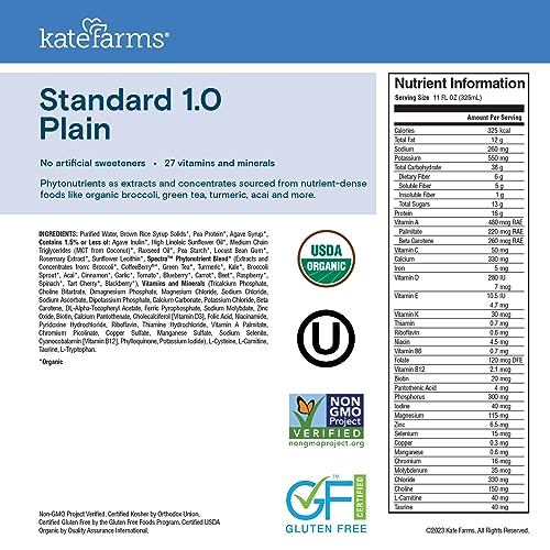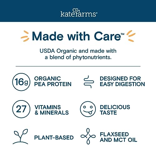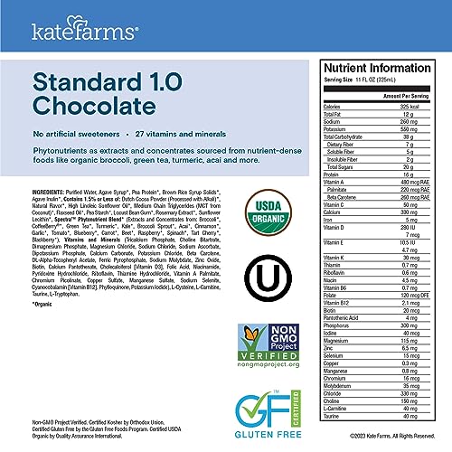 KATE FARMS Organic 1.0 Sole-Source Nutrition Shake, Chocolate, 16g Protein, 27 Vitamins and Minerals, Meal Replacement, Protein Shake, 11 oz (12 Pack)