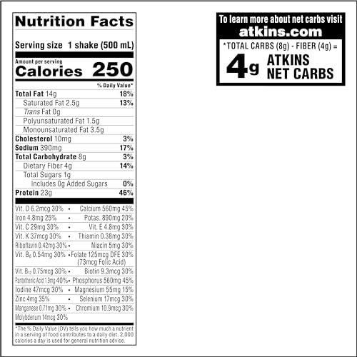Atkins Creamy Chocolate Meal Size Protein Shake, 23g Protein, Low Glycemic, 4g Net Carb, 1g Sugar, Keto Friendly, 12 Count