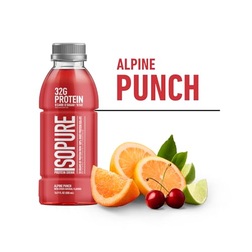Isopure Zero Carb 32g Clear Protein Ready-to-Drink, Whey Protein Isolate, Blue Raspberry, 12 Pack (Packaging May Vary)