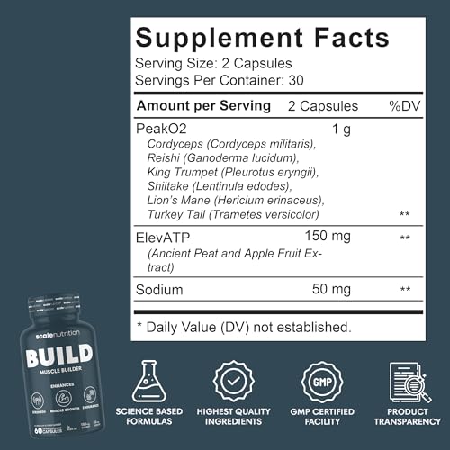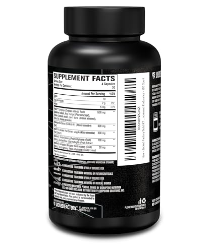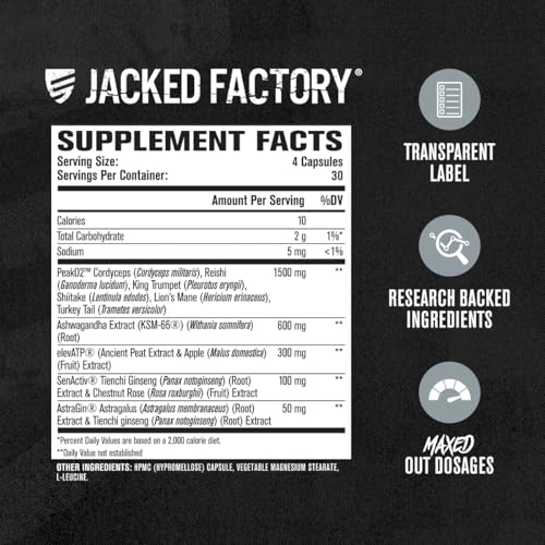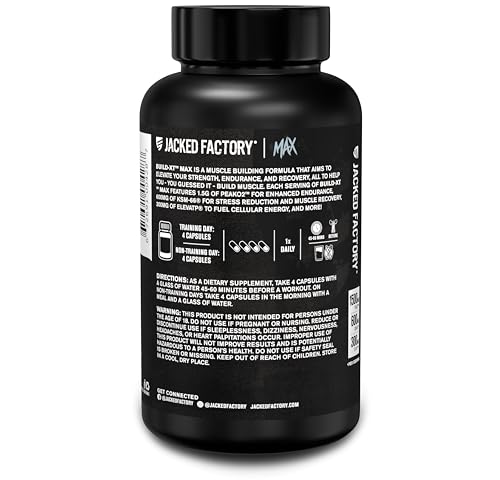 Jacked Factory Build-XT Max Muscle Builder for Men and Women - ATP Supplement with Peak02 Cordyceps, KSM-66 Ashwagandha, & ElevATP for Muscle Recovery, Muscle Growth, Increased Endurance - 120 Count