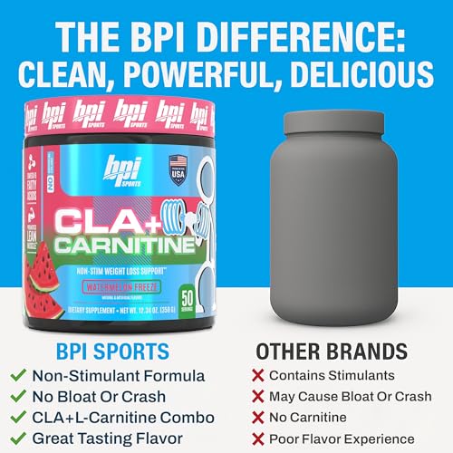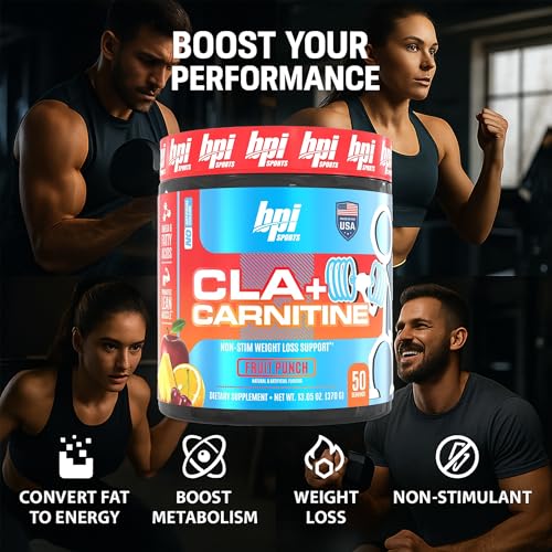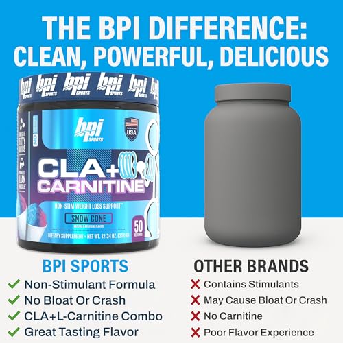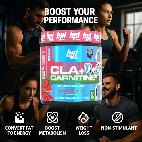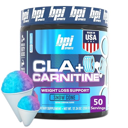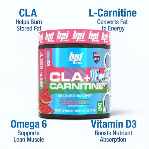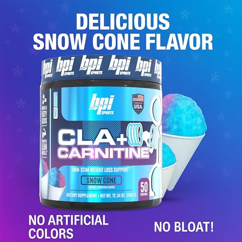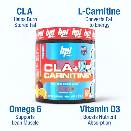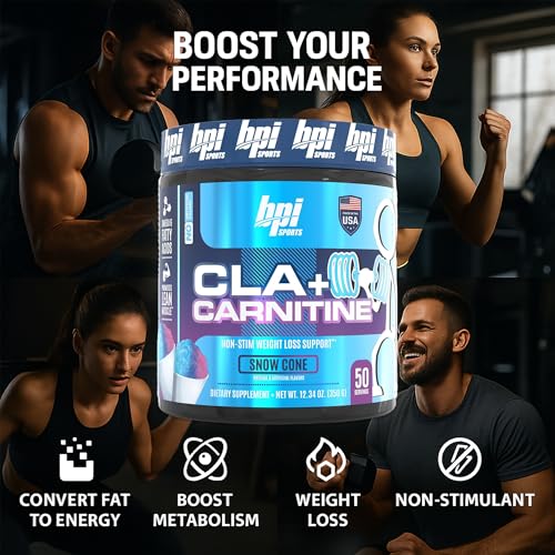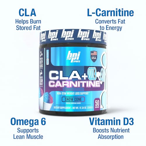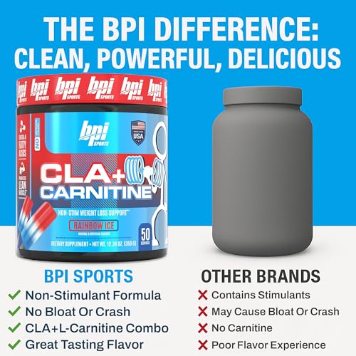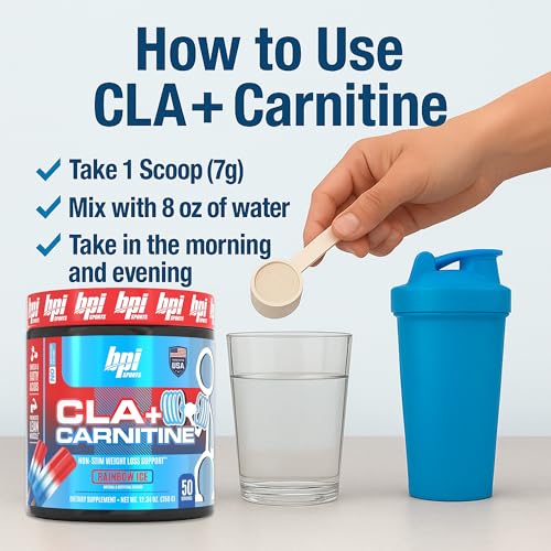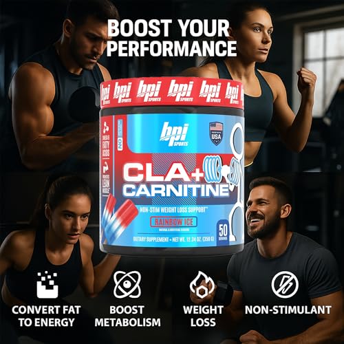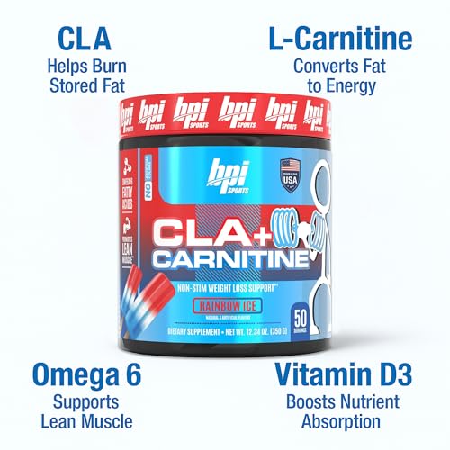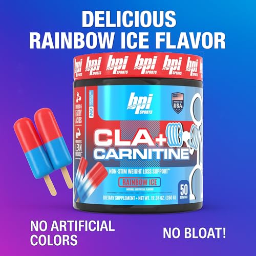 BPI Sports CLA + Carnitine Powder – Non Stimulant Fat Burner for Weight Loss, Metabolism & Lean Muscle – Caffeine Free – Rainbow Ice – 50 Servings – 12.34 oz