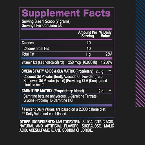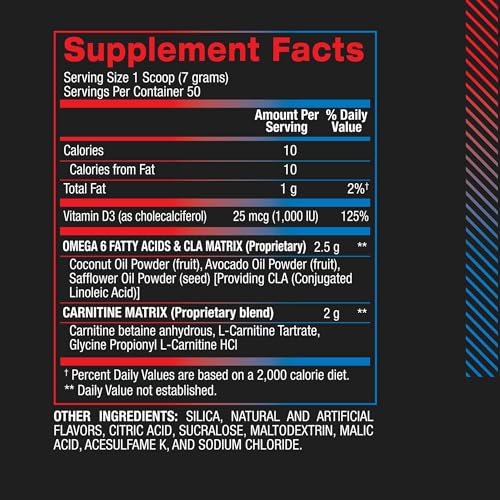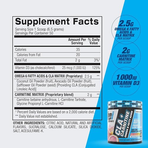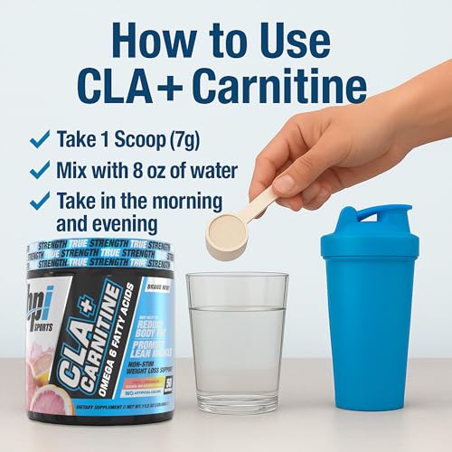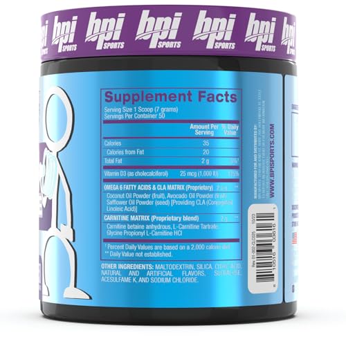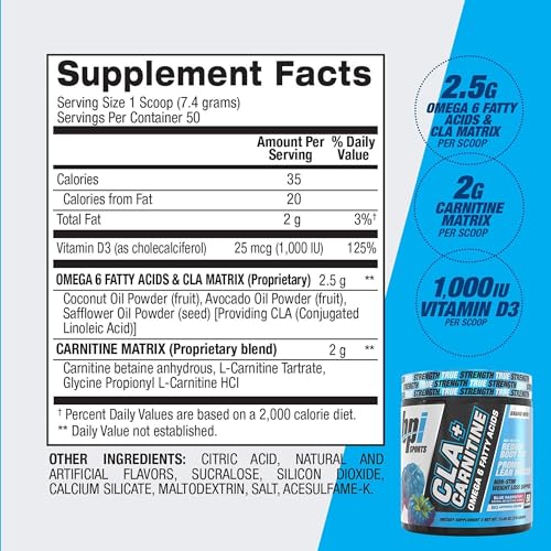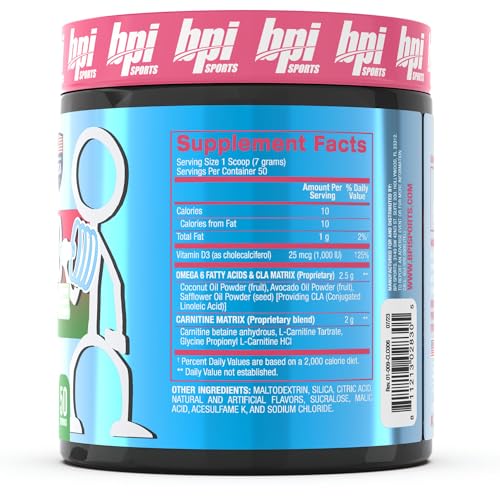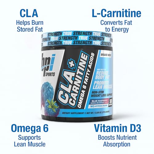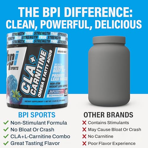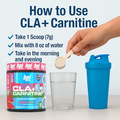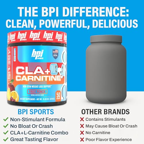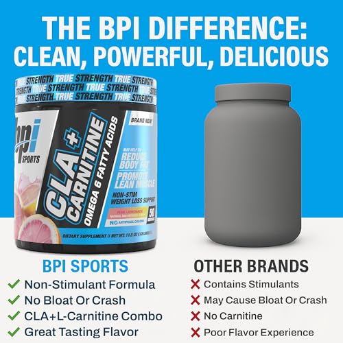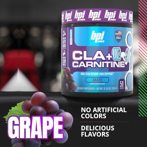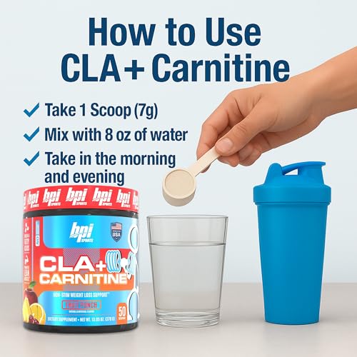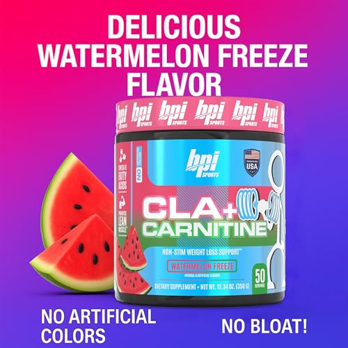 BPI Sports CLA + Carnitine Powder – Non Stimulant Fat Burner for Weight Loss, Metabolism & Lean Muscle – Caffeine Free – Rainbow Ice – 50 Servings – 12.34 oz