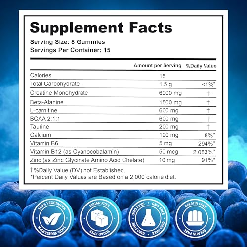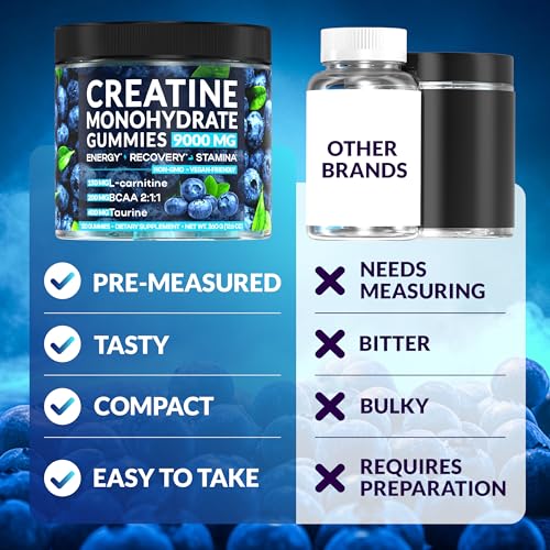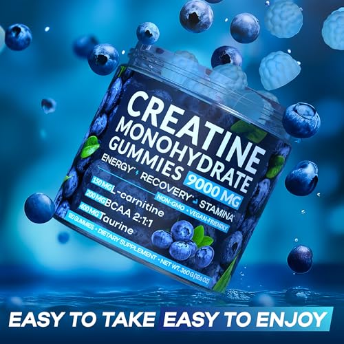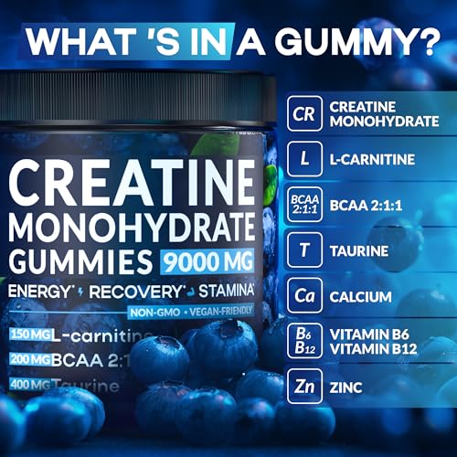 Creatine Monohydrate Gummies Complex 9000 mg – Creatine for Women & Men – Pre Workout Creatine Chews for Muscle Growth, Strength & Energy– 120 Count