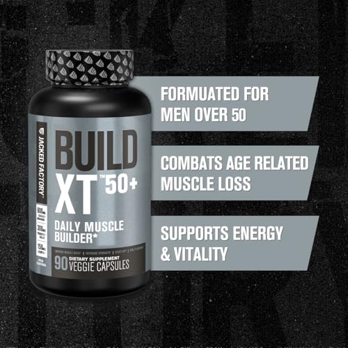Jacked Factory Build-XT Daily Muscle Builder & Performance Enhancer - Muscle Building Supplement for Muscular Strength & Growth | Trademarked Ingredients Peak02, ElevATP, & Astragin - 60 Veggie Pills