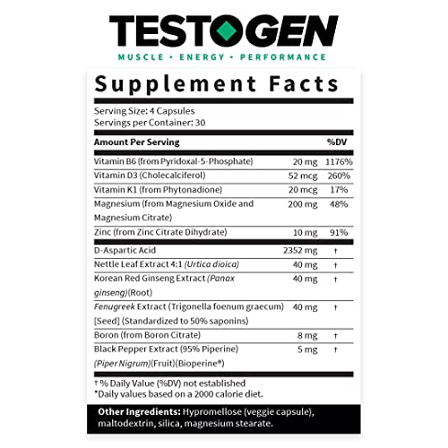 TestoGen Booster for Men - Natural Male Vitality Supplement to Combat Low Energy Levels, Fight Fatigue, Support Weight Control, Muscle Growth & Focus - 3-Month Supply