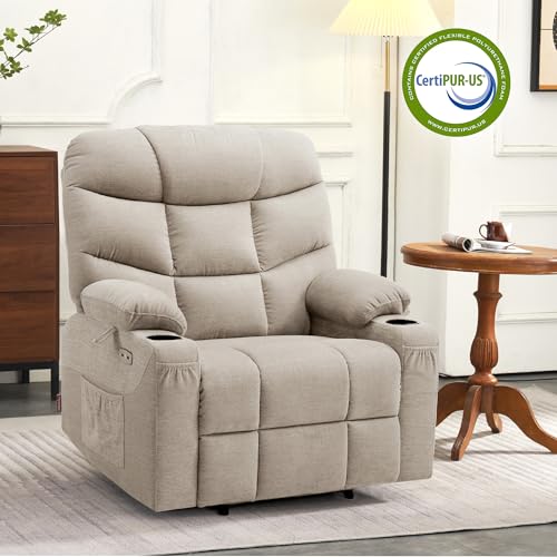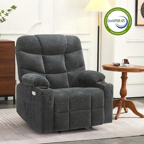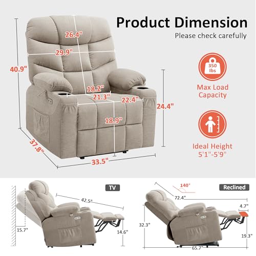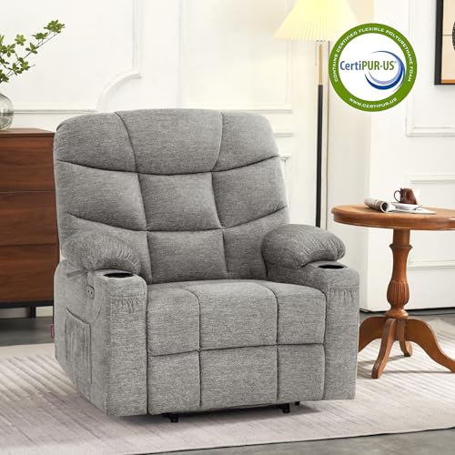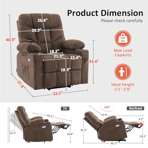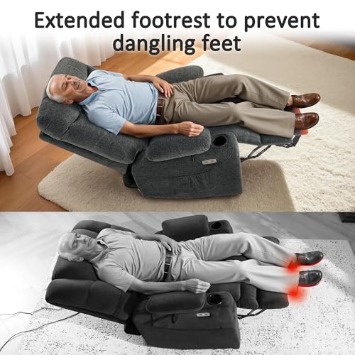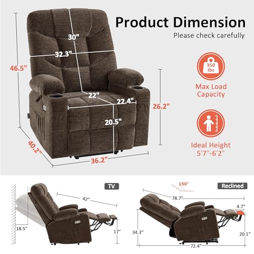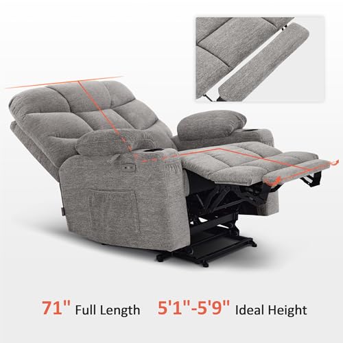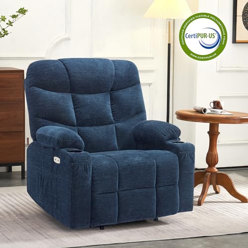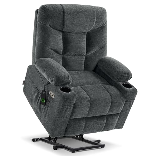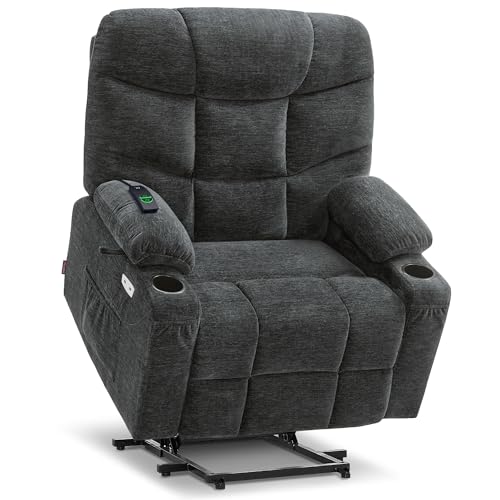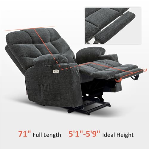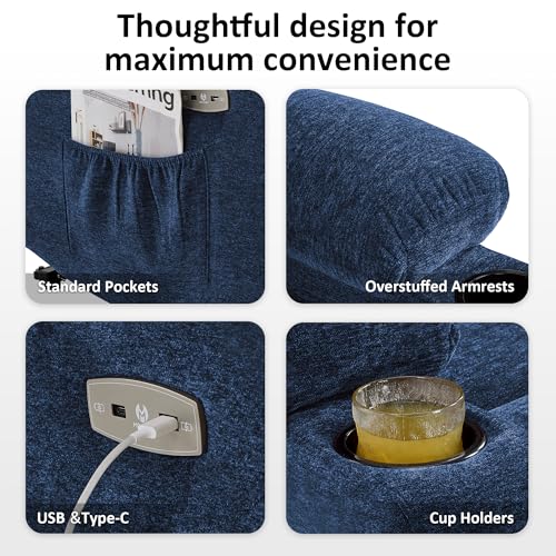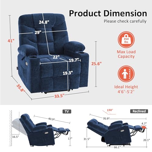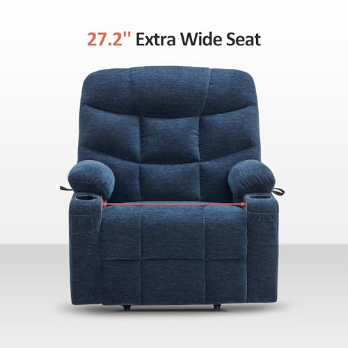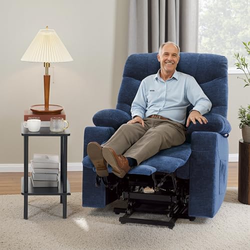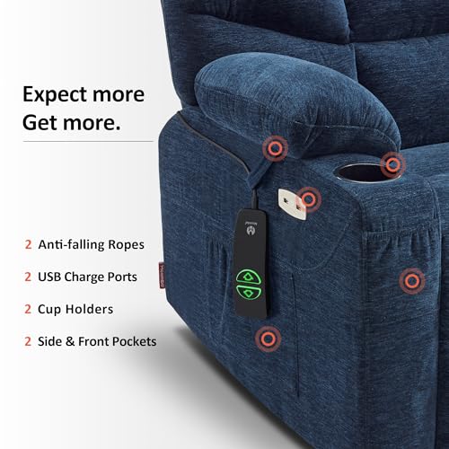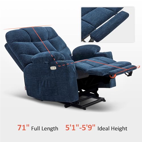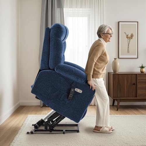 MCombo Power Lift Recliner Chair with Extended Footrest for Elderly People, Fabric 7287 (Navy Blue, Medium)
