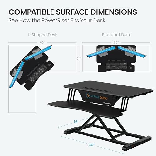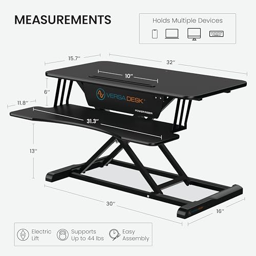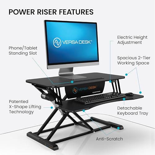 VERSADESK Power Riser 32" Electric Standing Desk Converter, Sit to Stand Up Height Adjustable Desk Riser, 2-Tier Tabletop Laptop and Dual Monitor Desktop Workstation with Wide Keyboard Tray, Black