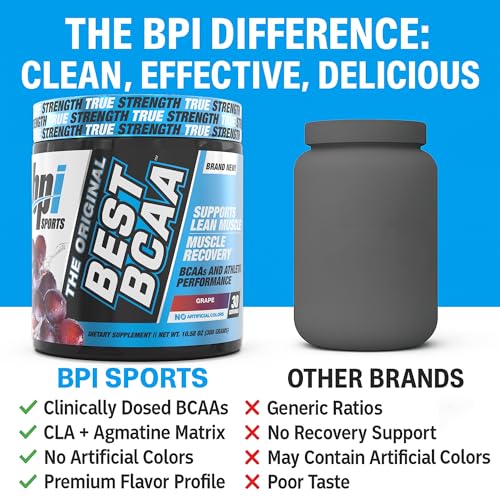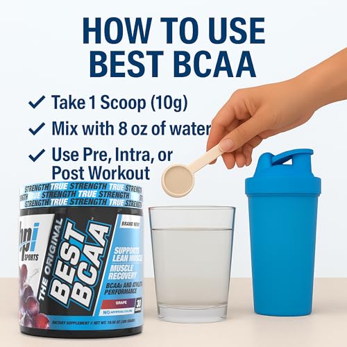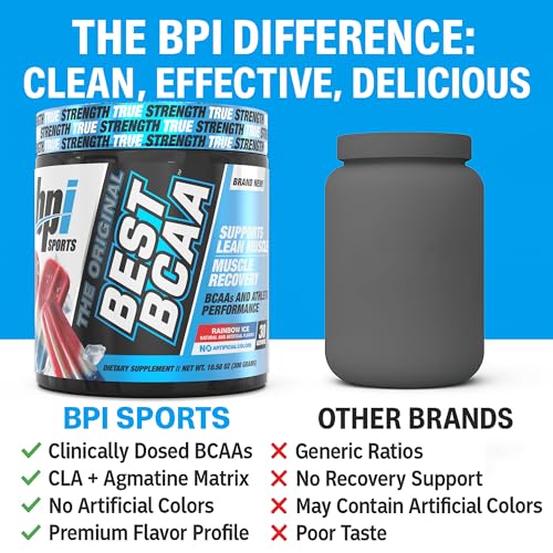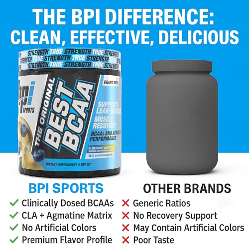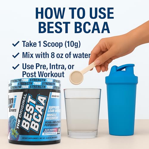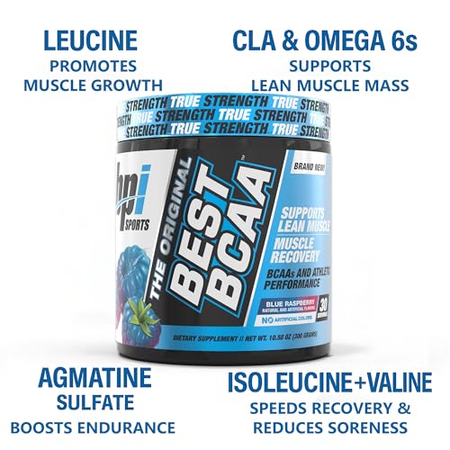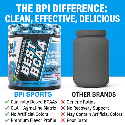 BPI Sports Best BCAA - BCAA Powder - Branched Chain Amino Acids - Muscle Recovery - Muscle Protein Synthesis - Improved Performance – Hydration – Blue Raspberry - 60 Servings - 21.12 Oz