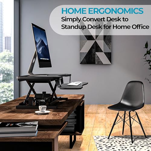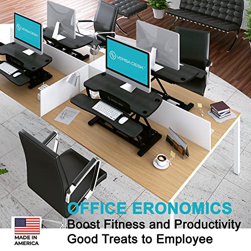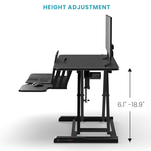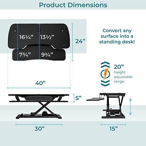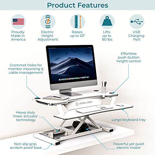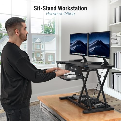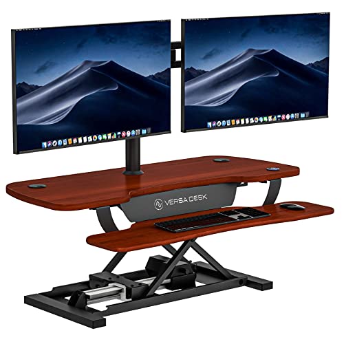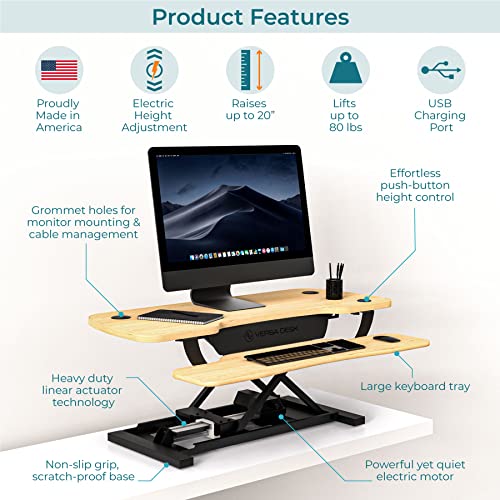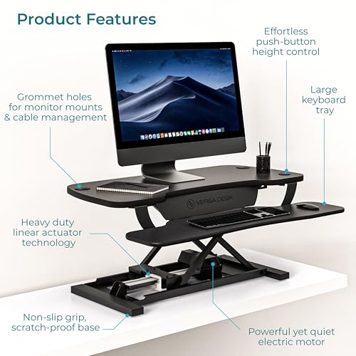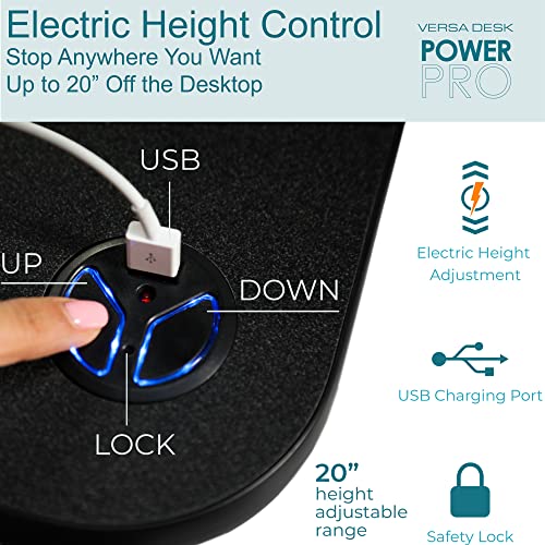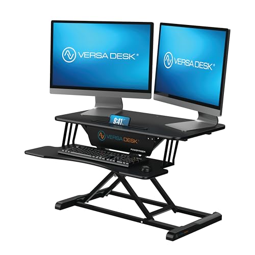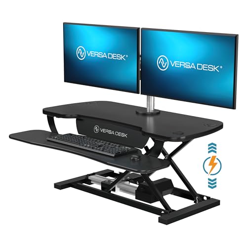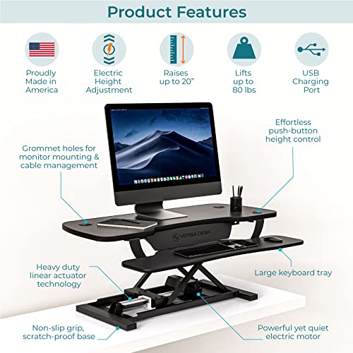VERSADESK PowerPro™ 36 Inch Electric Standing Desk Converter, Height Adjustable Sit to Stand Up Desk Riser, Laptop and Dual Monitor Desktop Workstation with Wide Keyboard Tray and USB Port, Black