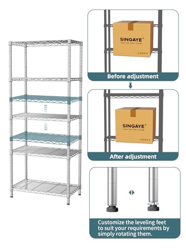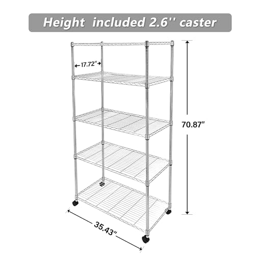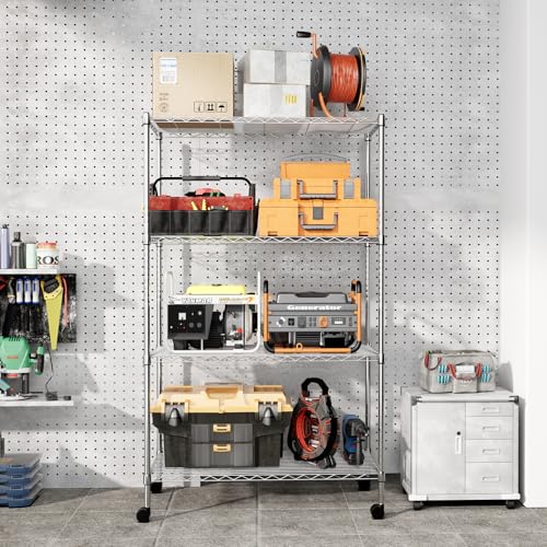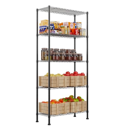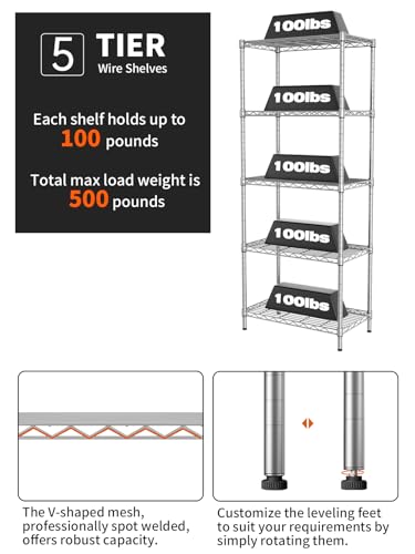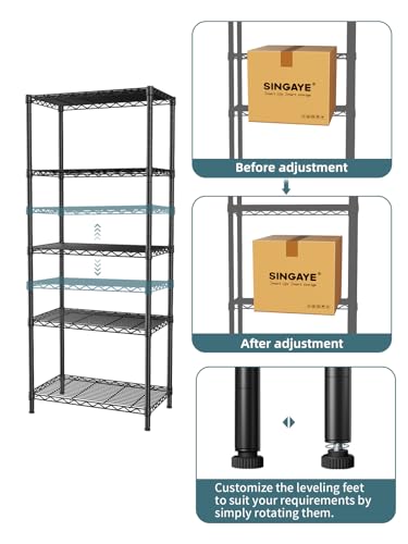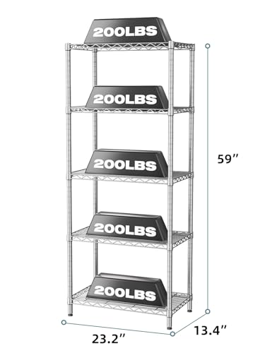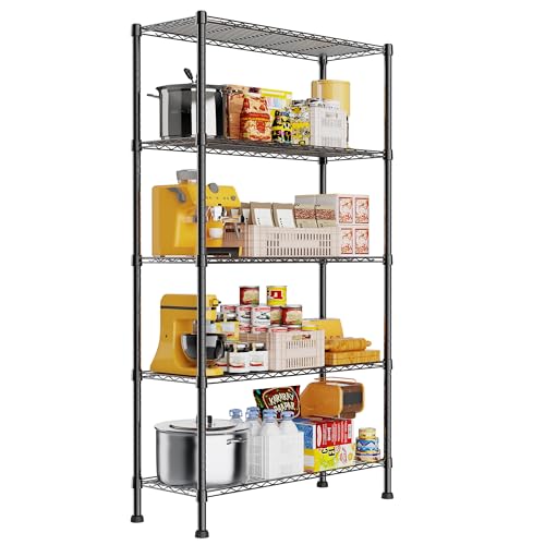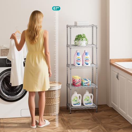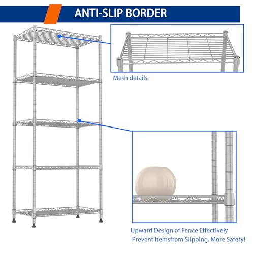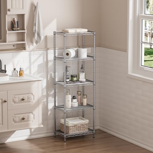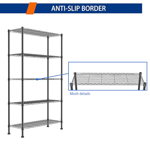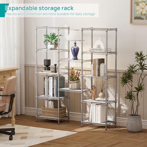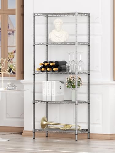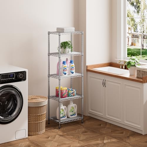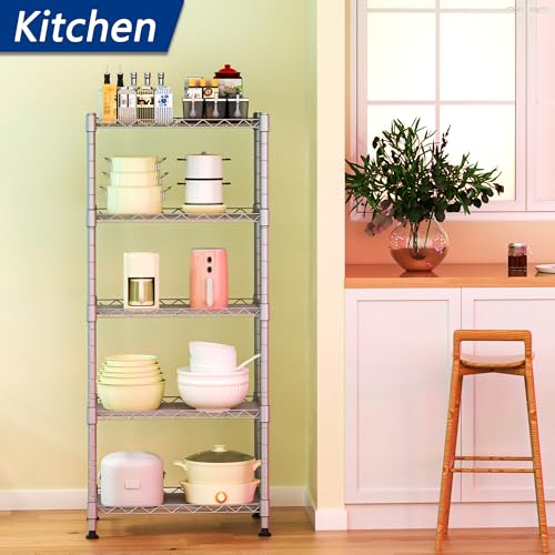 SINGAYE 5 Tier Storage Garage Shelving Units Heavy Duty Wire Shelves Pantry Metal for Pantry Closet Kitchen Laundry Bathroom Organizers Shelf Home Shorage Gray