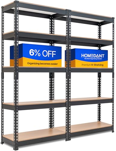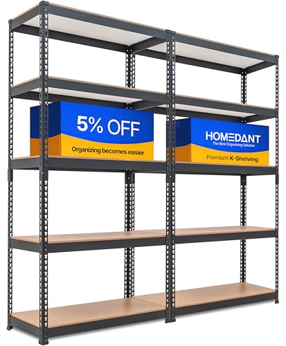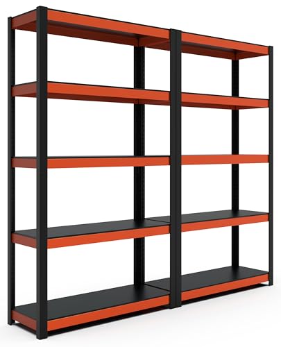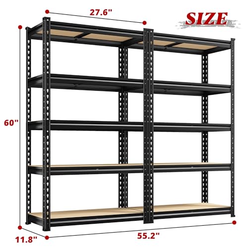 REIBII Set of 2 Storage Shelves 5 Tier Garage Shelving Heavy Duty Metal Shelving 2000LBS Garage Shelves Adjustable Metal Shelf for Kitchen Warehouse Pantry Closet, 27.6" W x 11.8" D x 60" H