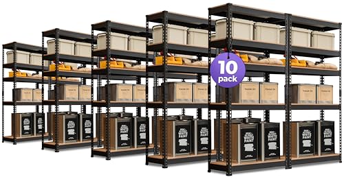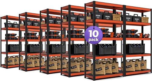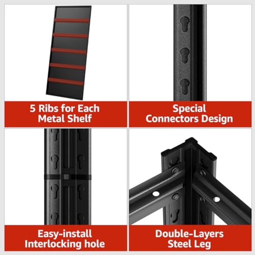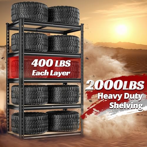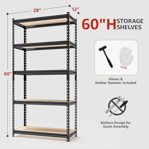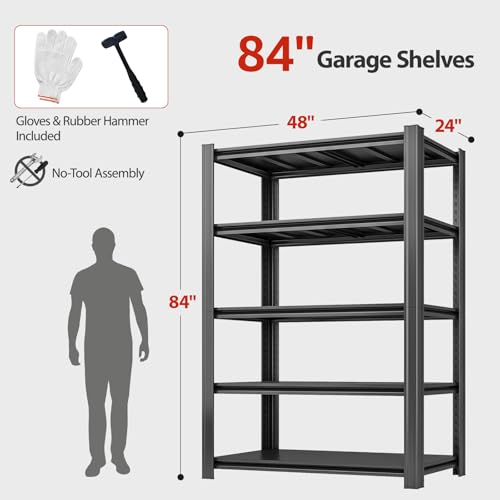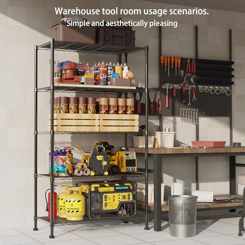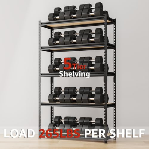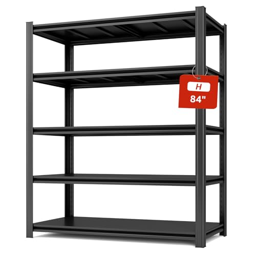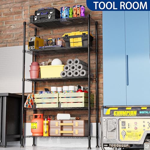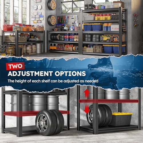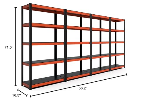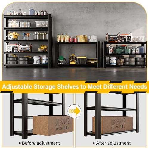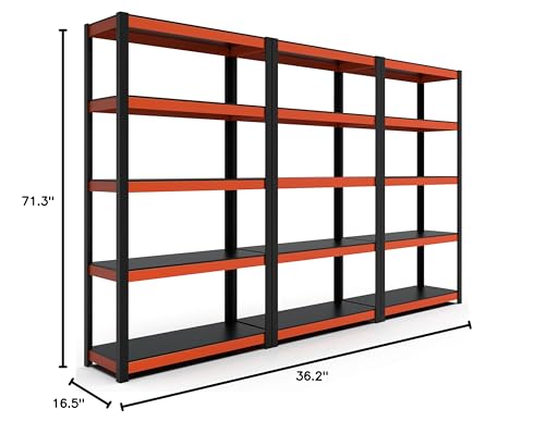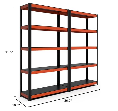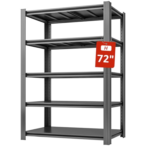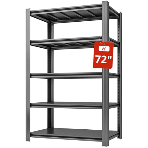 REIBII Garage Shelving 3000 LBS Storage Shelves Adjustable Metal Garage Shelves 5 Tier Heavy Duty Shelving Units and Storage Rack Shelf for Garage, Basement, 72" H x 36" W x 16" D