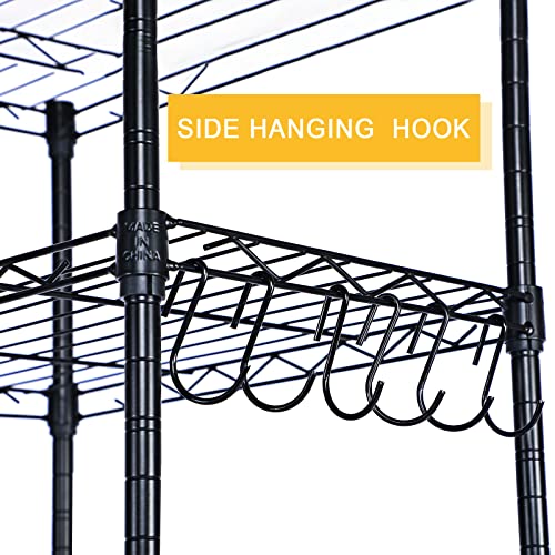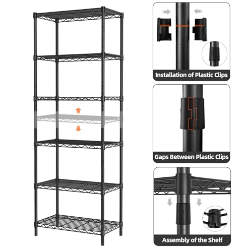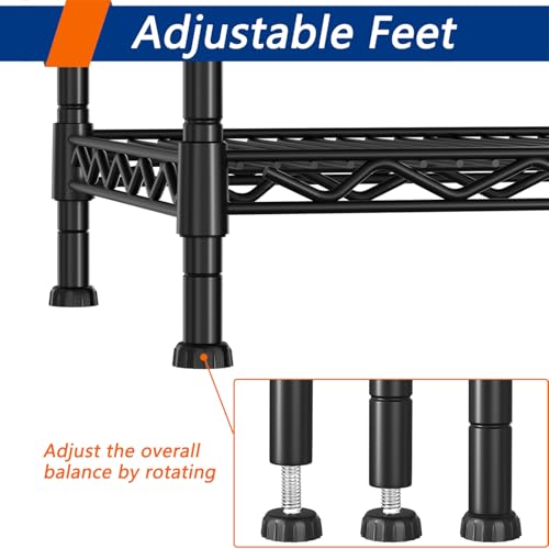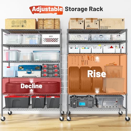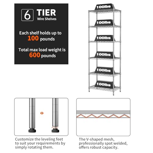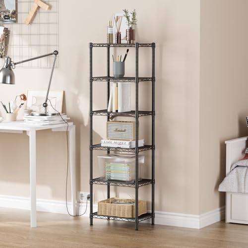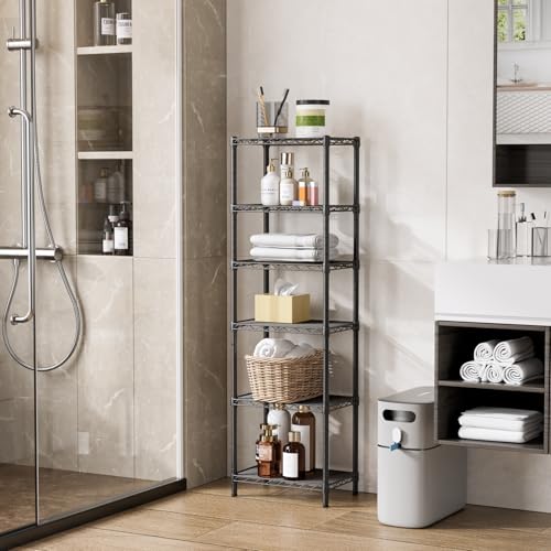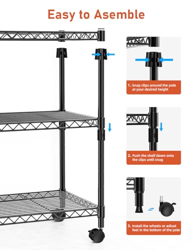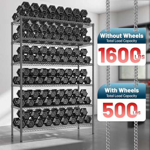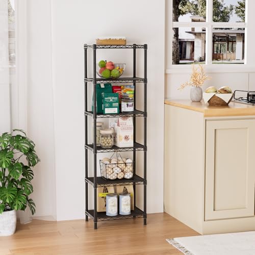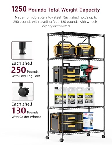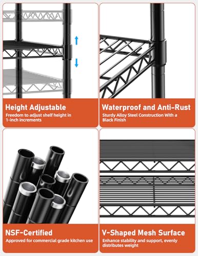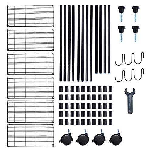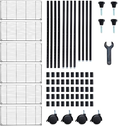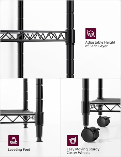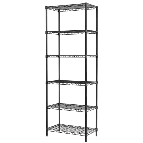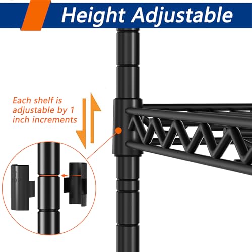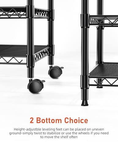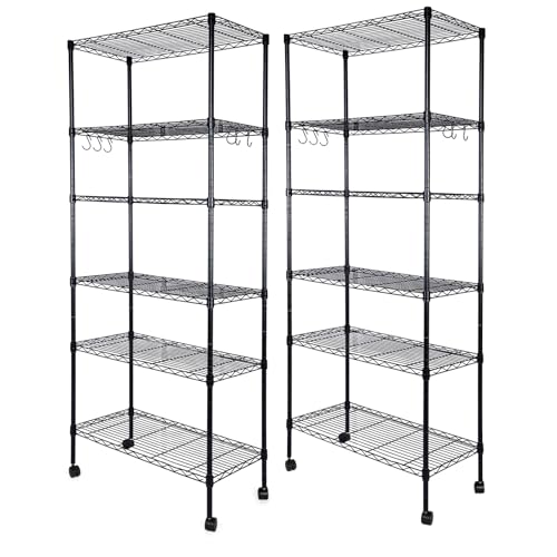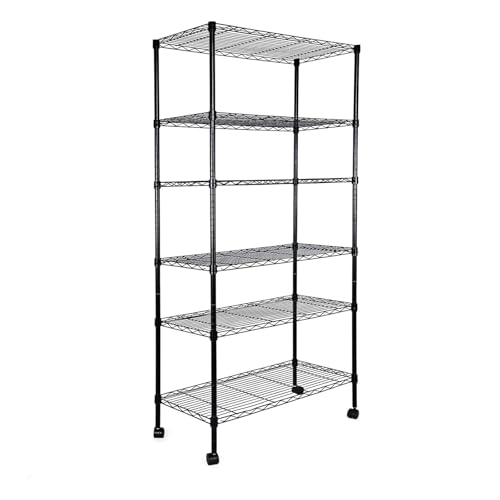 82" H X45 W X18 D Storage Shelves with Wheels, 6 Tier Wire Shelving Adjustable Metal Shelving Pantry Shelves Capacity 1600LBS for Garage Shelving, Pantry, Kitchen, Closet, Black