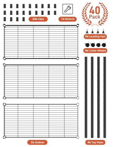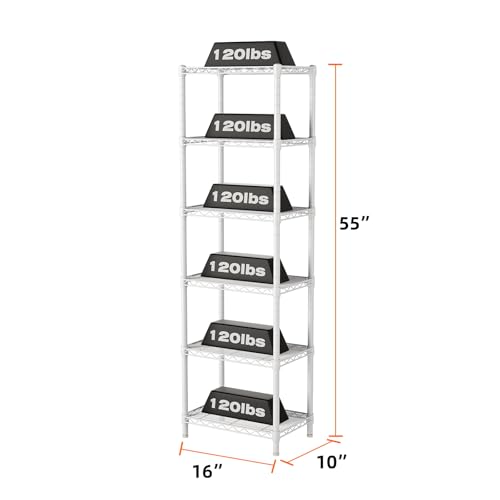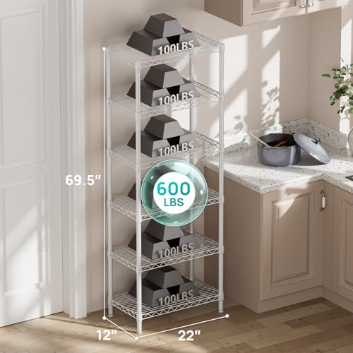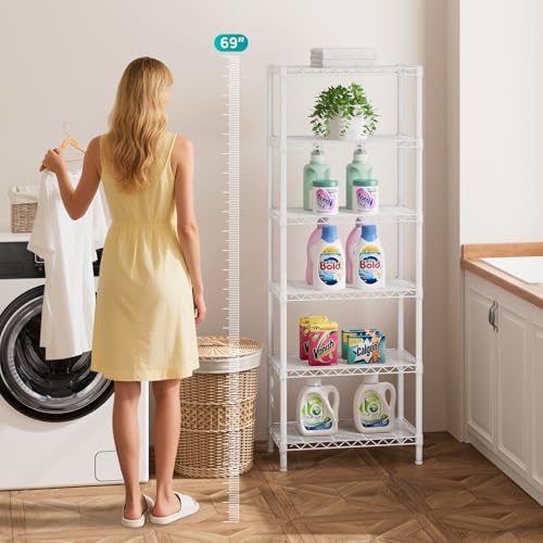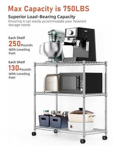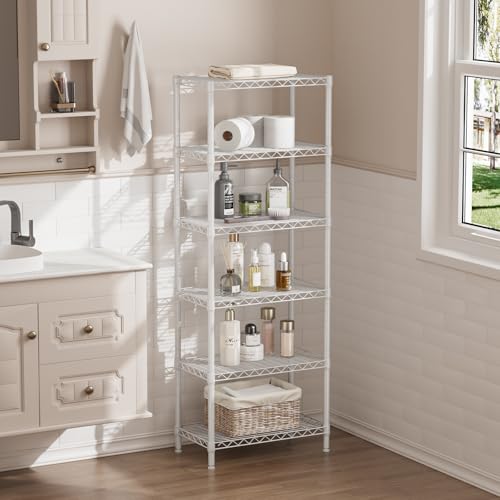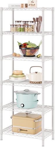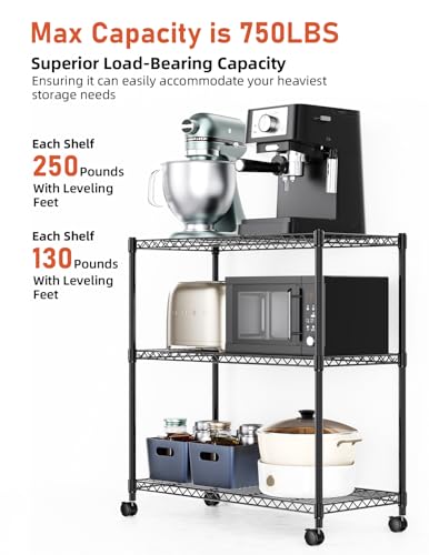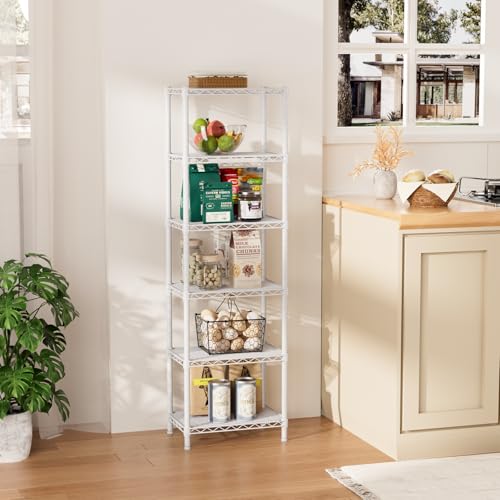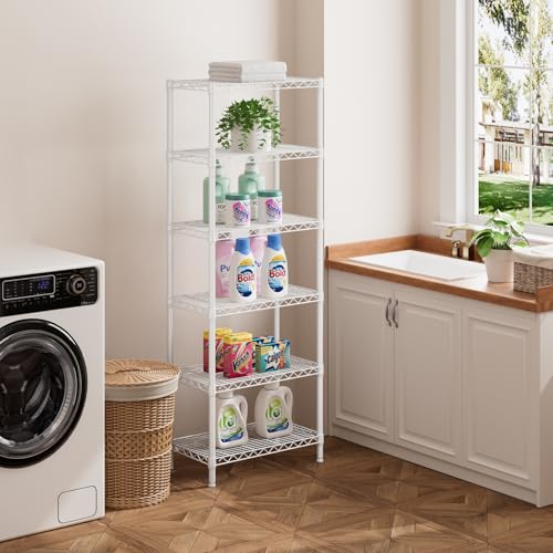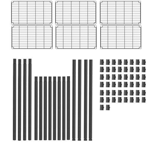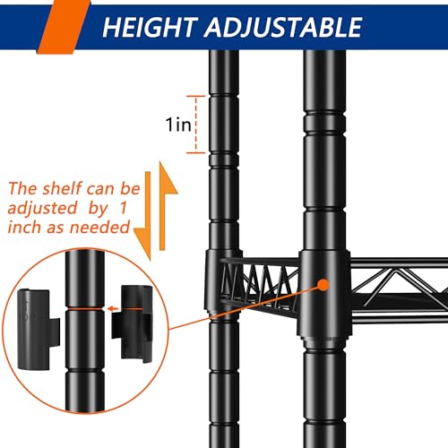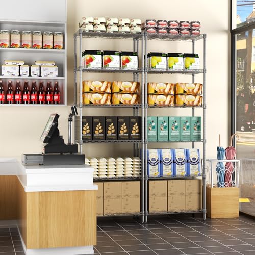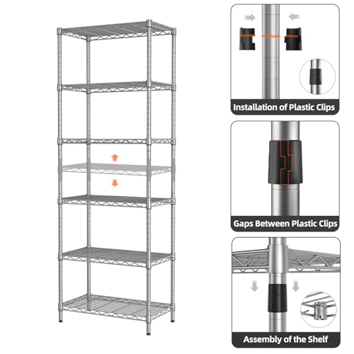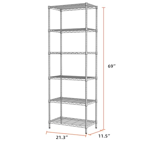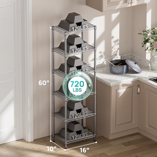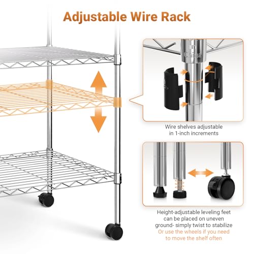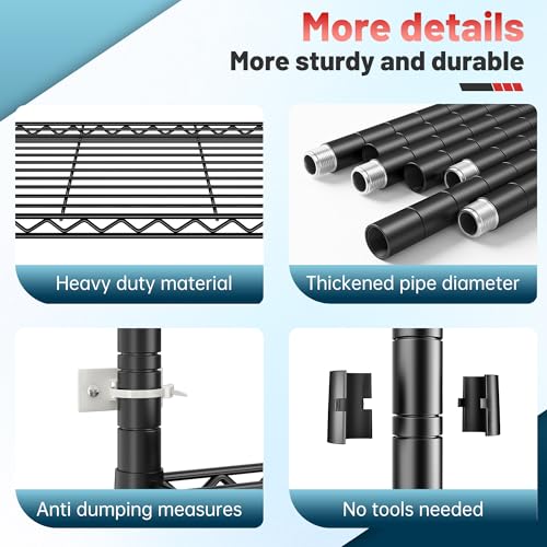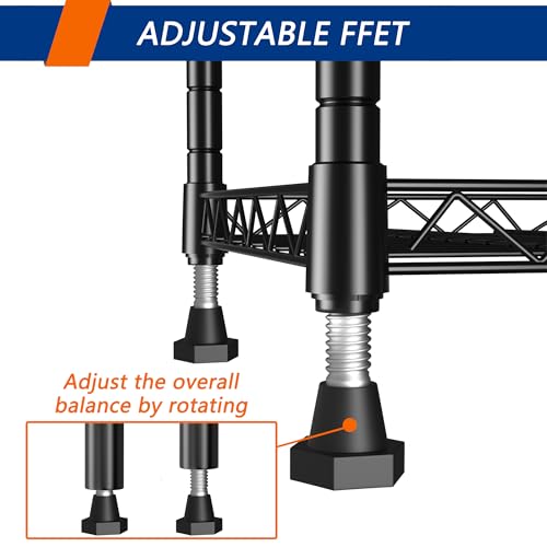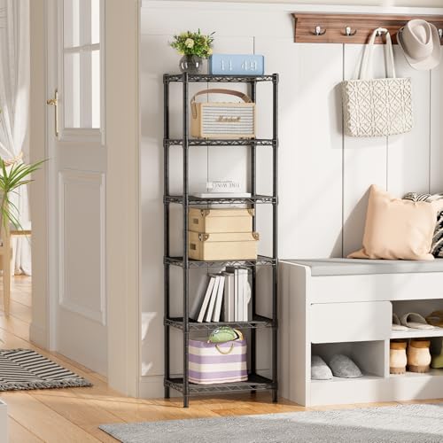 82" H X45 W X18 D Storage Shelves with Wheels, 6 Tier Wire Shelving Adjustable Metal Shelving Pantry Shelves Capacity 1600LBS for Garage Shelving, Pantry, Kitchen, Closet, Black