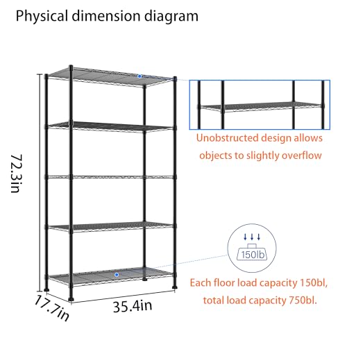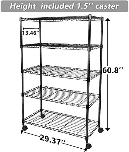 Simple Deluxe 5-Tier Heavy Duty Storage Shelving Unit, 1250 Lbs Loading Capacity, 29.92" W x 13.98" D x 61.02" H, Black