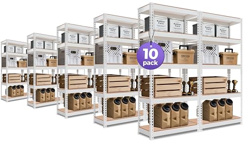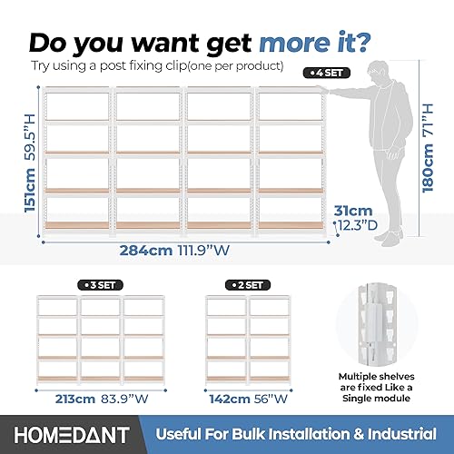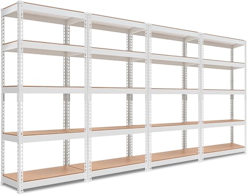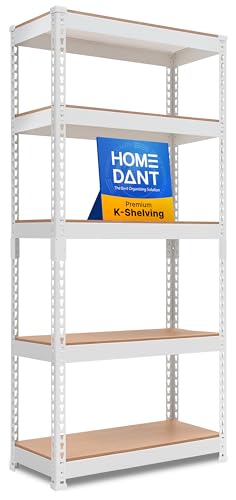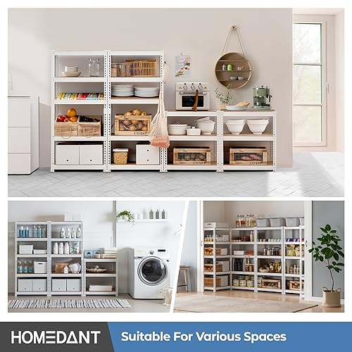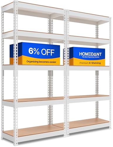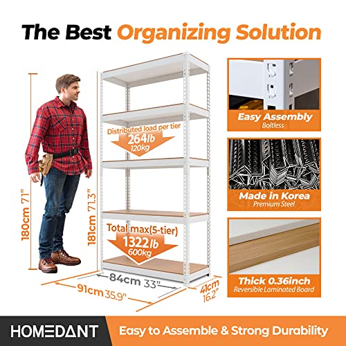 HOMEDANT 5 Tier Laminated White Boltless Metal Shelving Unit Adjustable Garage Storage Utility Rack Heavy Duty Shelves Organization Multipurpose Shelf Warehouse Pantry 28" W x 12.3" D x 59.5" H 1Pack