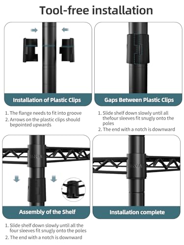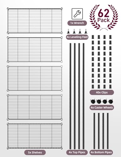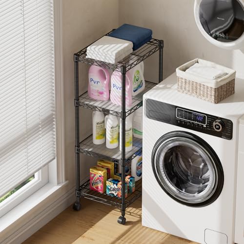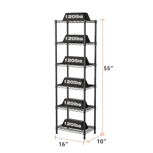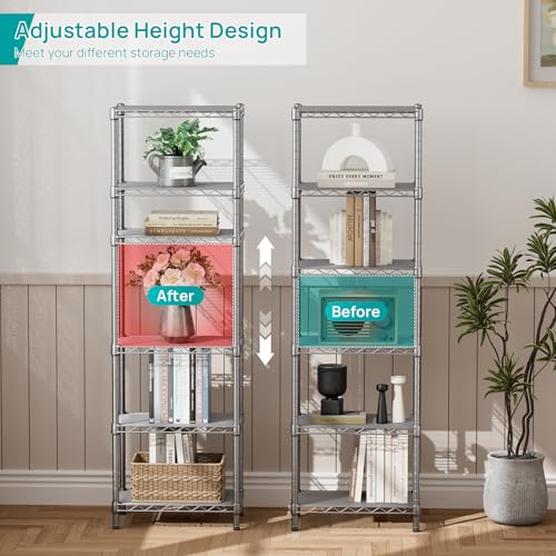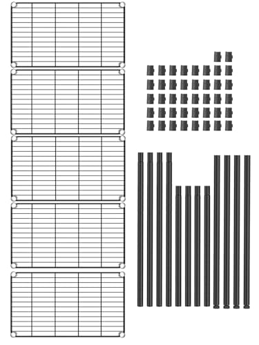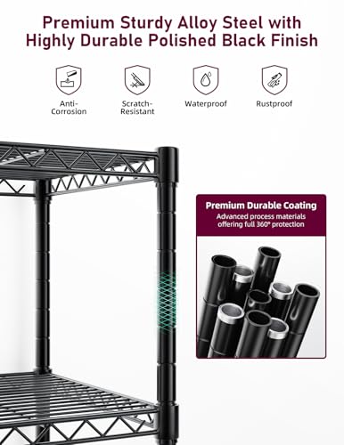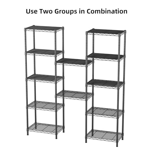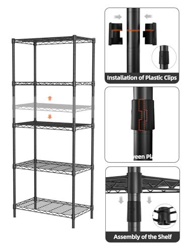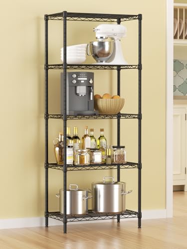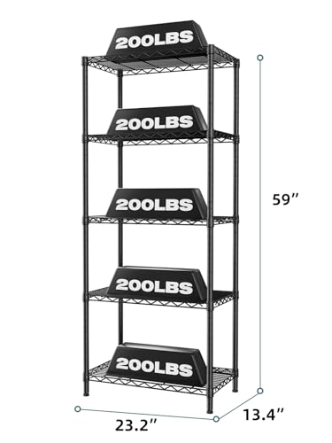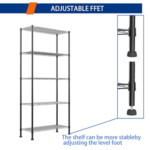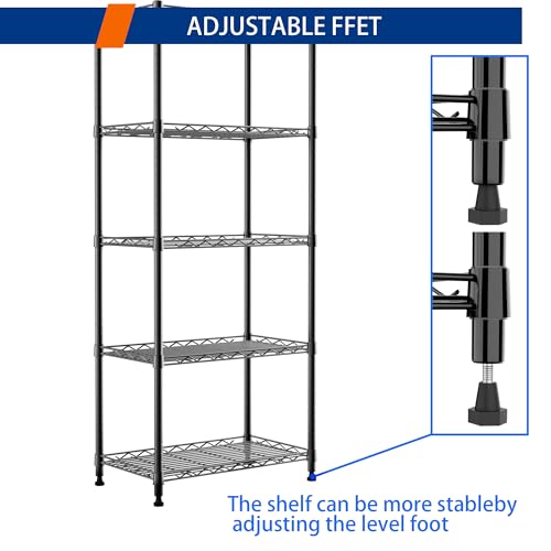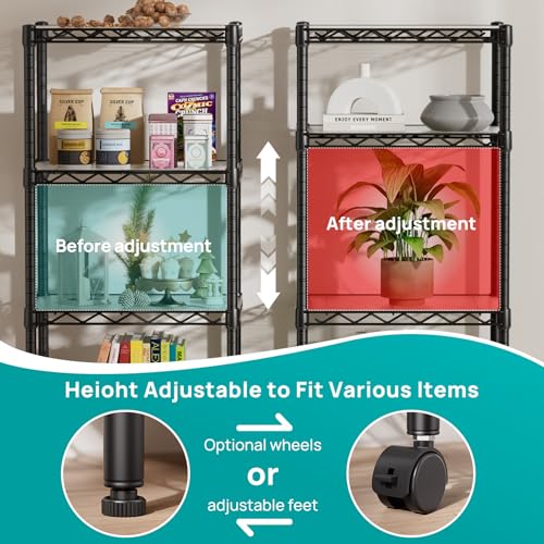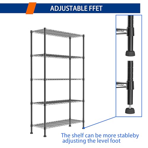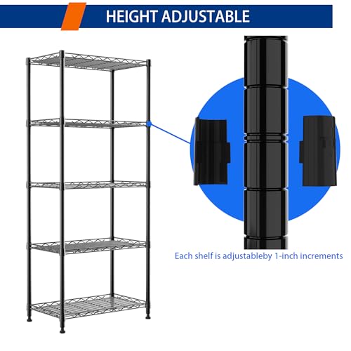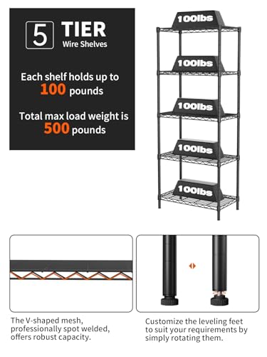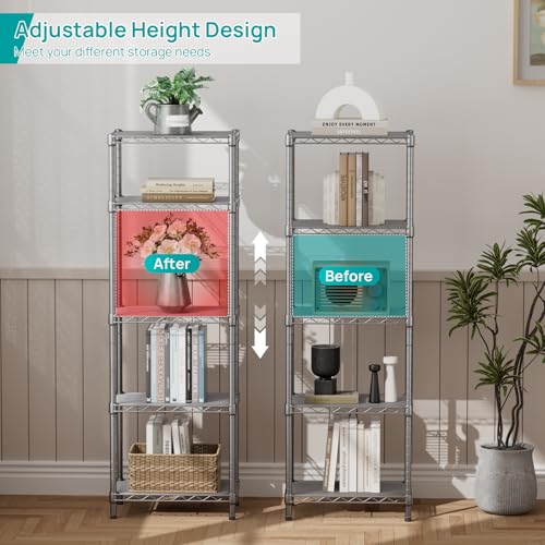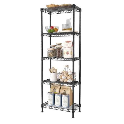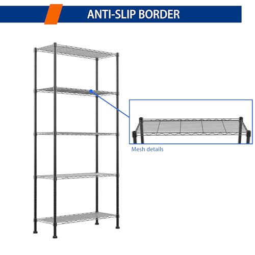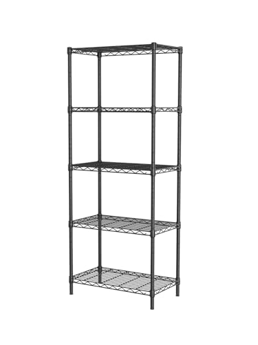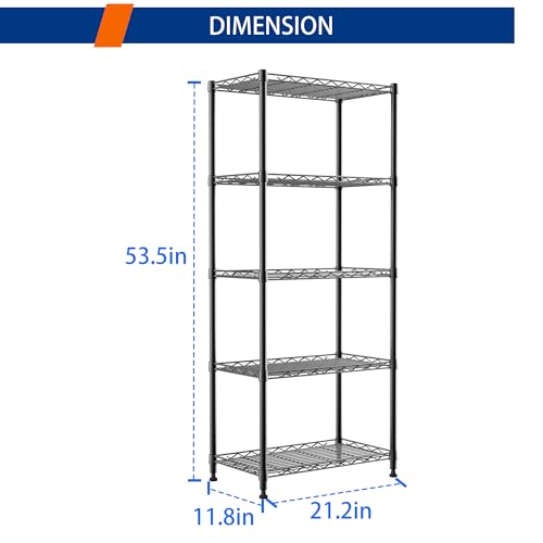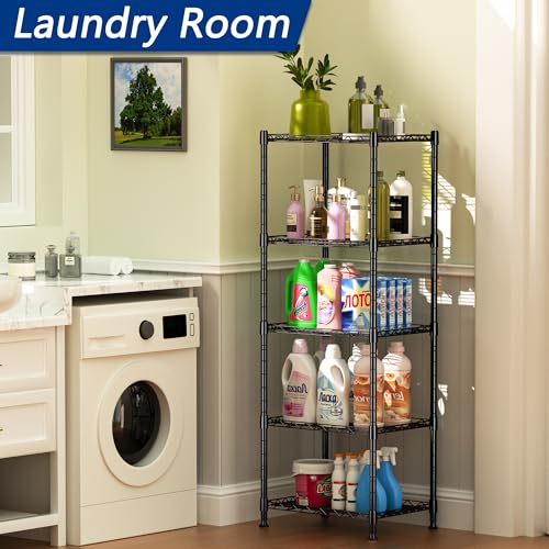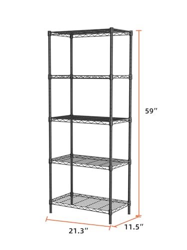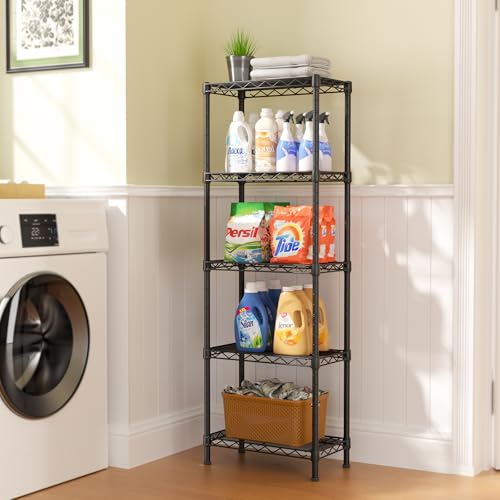 REGILLER 5-Wire Shelving Metal Storage Rack Adjustable Shelves,Standing Storage Shelf Units for Laundry Bathroom Kitchen Pantry Closet(Black,11.8" D x 16.6" W x 53.5" H)