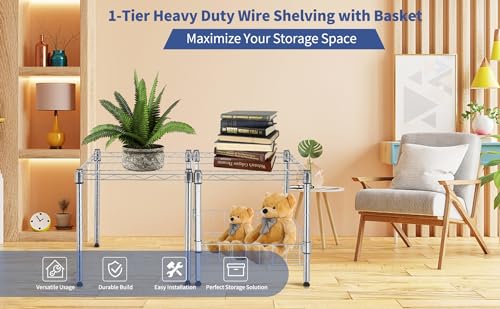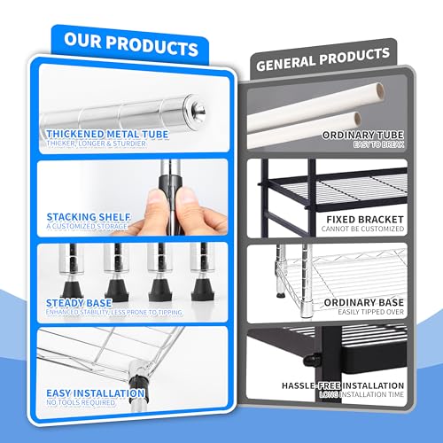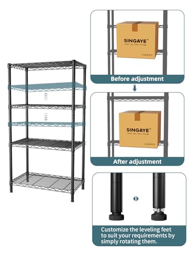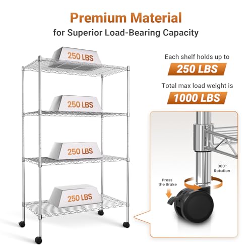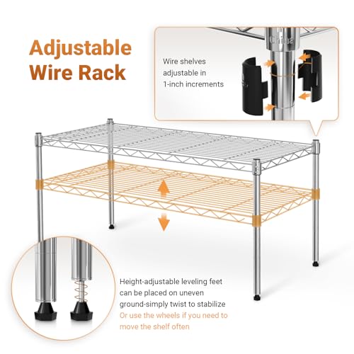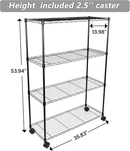 DUMOS 4 Tier Metal Wire Rack Shelf Heavy Duty Standing Shelves Adjustable Steel Closet Shelving Unit Organizers and Storage for Kitchen Bathroom Pantry Office, 13.78" D x 35.43" W x 54.02" H