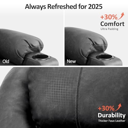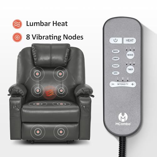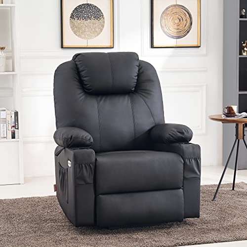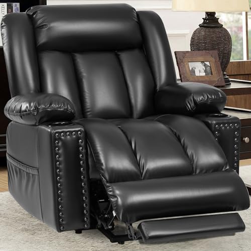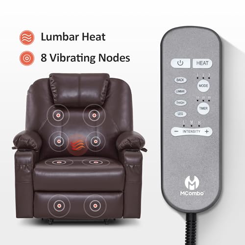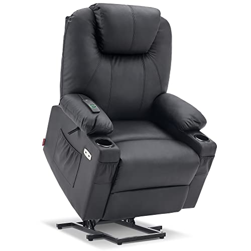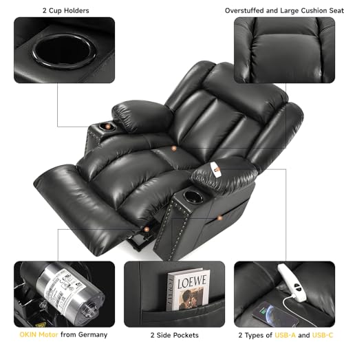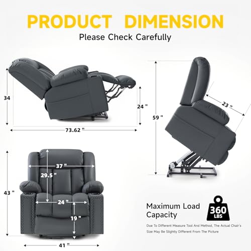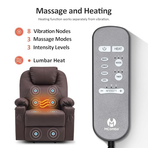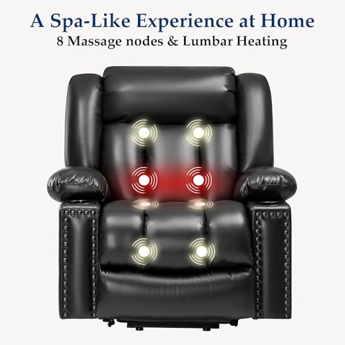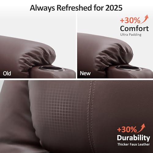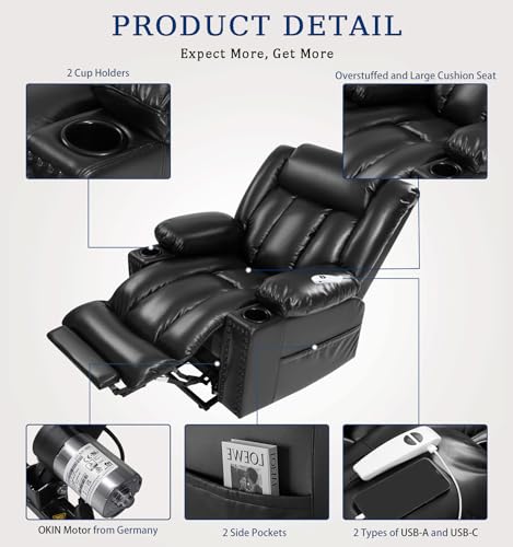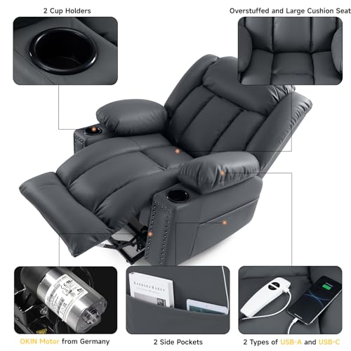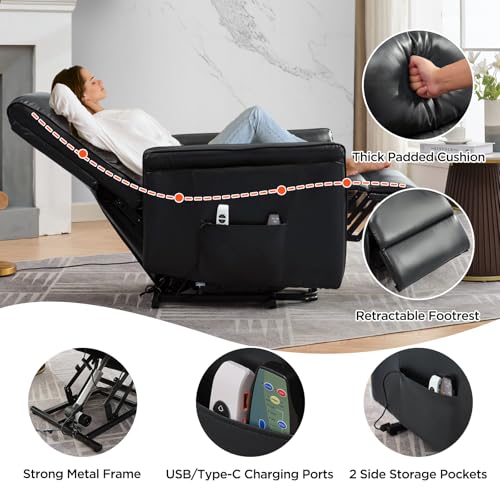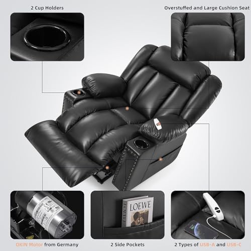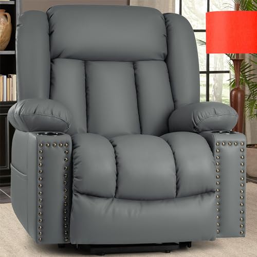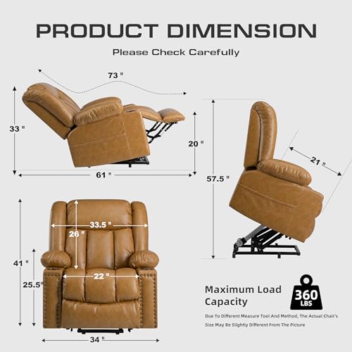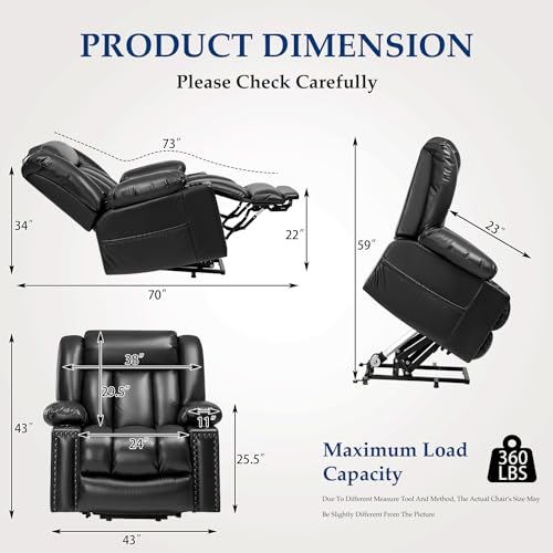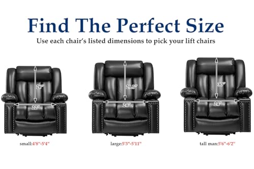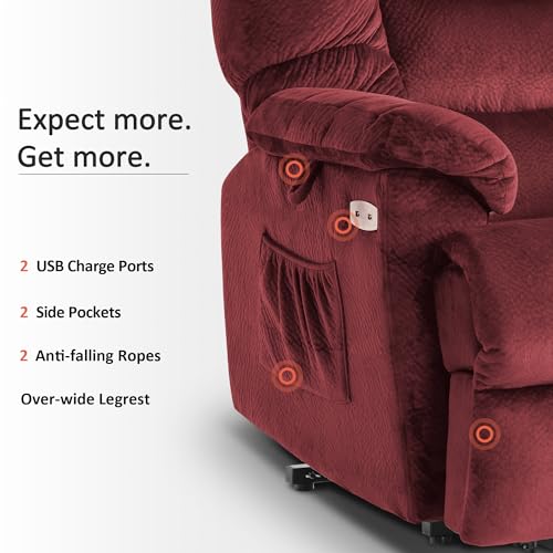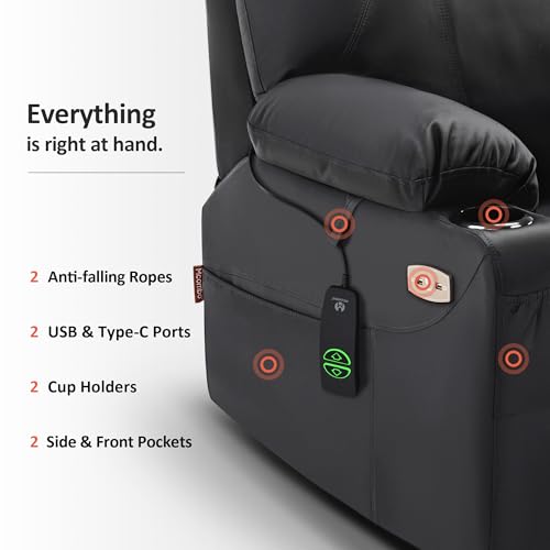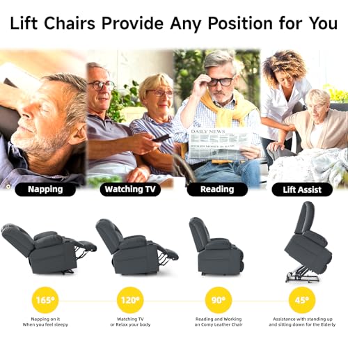 Large Power Lift Chairs Recliners for Elderly with Heated and Massage, Overstuffed Adjustable Lift Chairs, 3 Positions, Breathable Leather, USB-A and USB-C, Cup Holder, Side Pocket Dark Brown