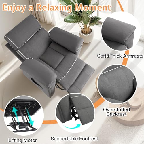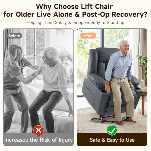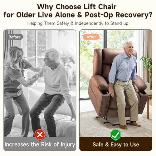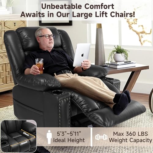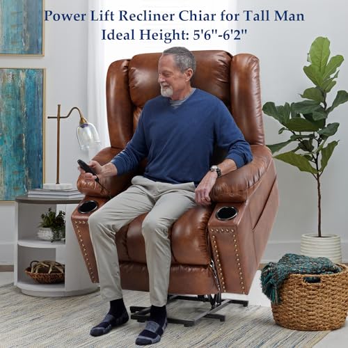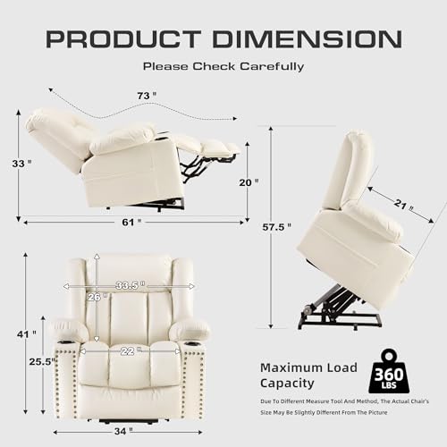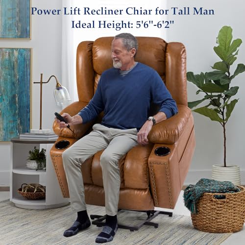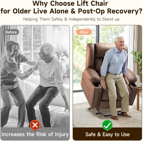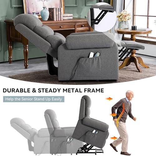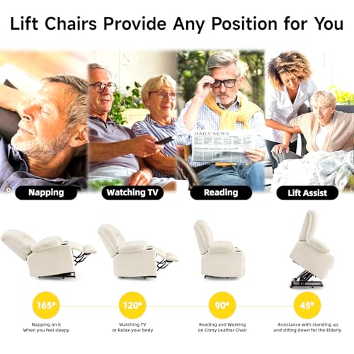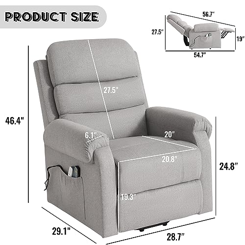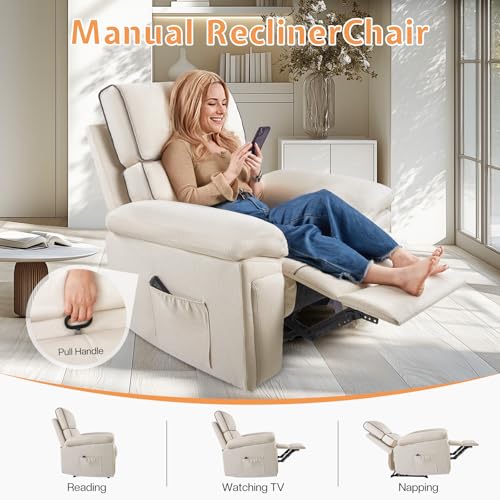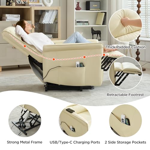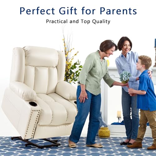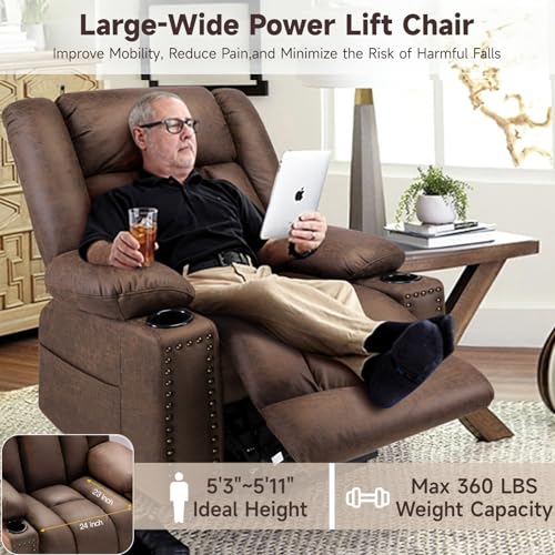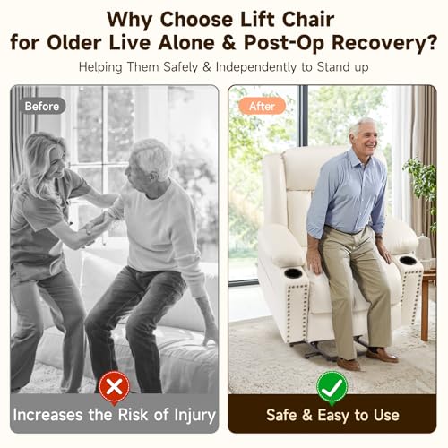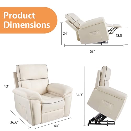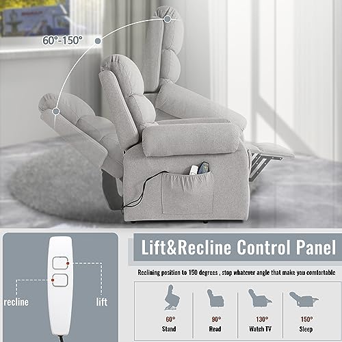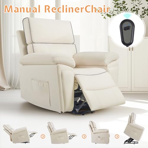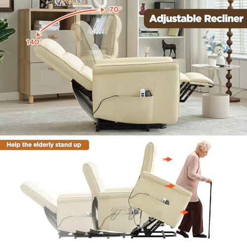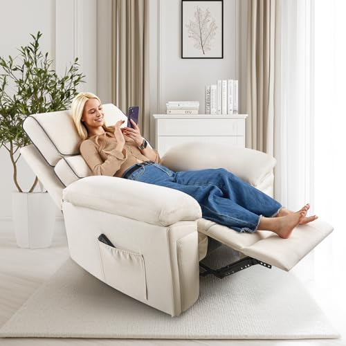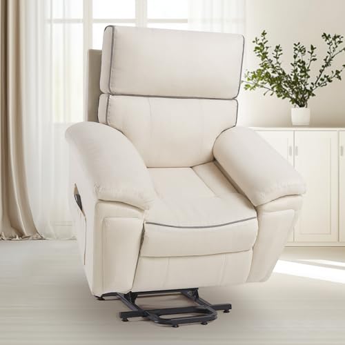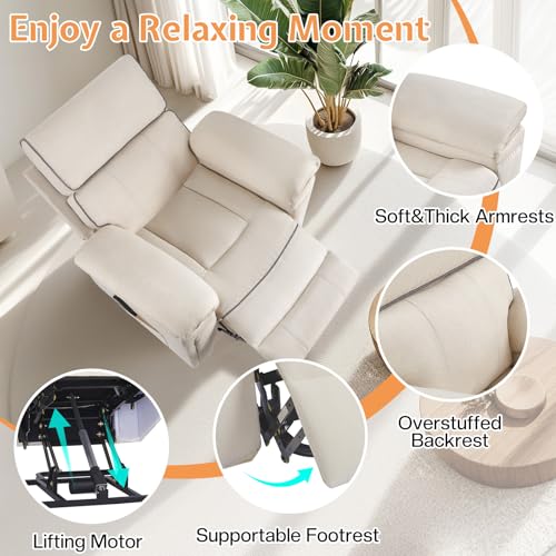 Jocisland Oversized Power Lift Recliner Chairs for Adults, Electric Lazy Boy Recliners for Elderly with Side Pocket, Large Lay Flat Reclining Sofa for Living Room Bedroom, Beige
