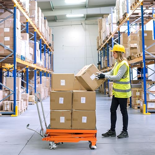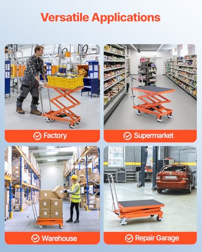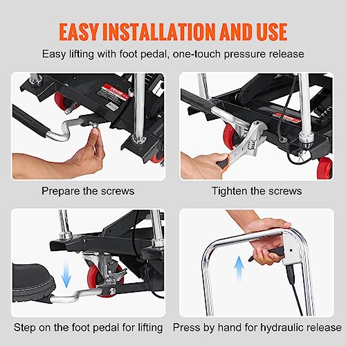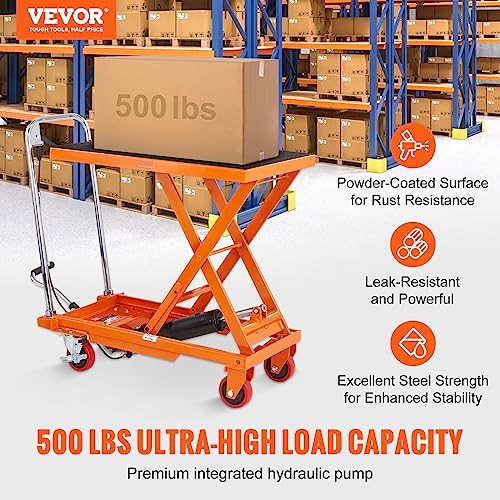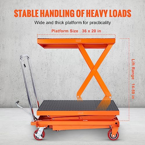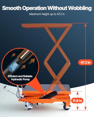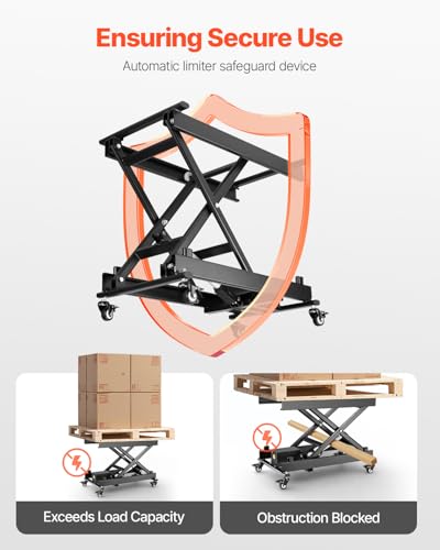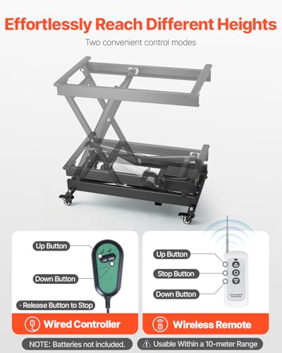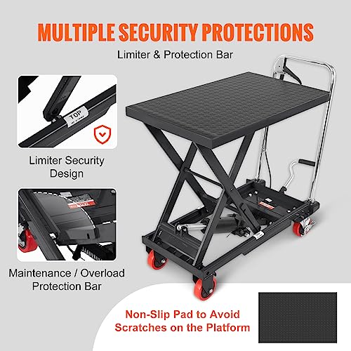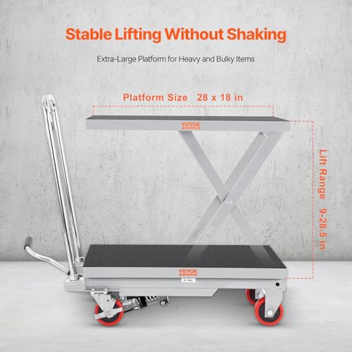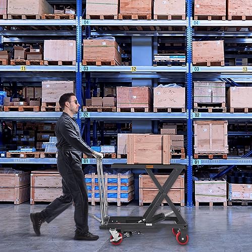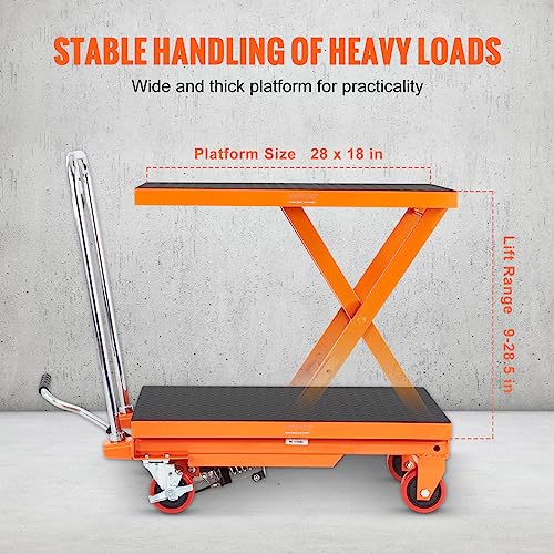 VEVOR Electric Lift Table, 330 lbs Capacity Single Scissor Lift Table, 8-28 in Height Adjustable Lifting Platform, Coffee Table Lift with 4 Wheels, for Material Handling and Transportation, Black