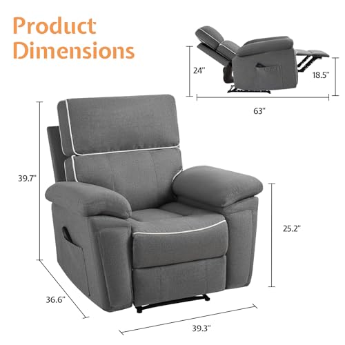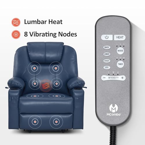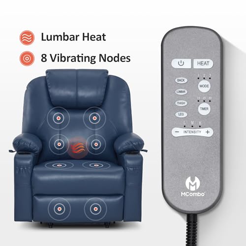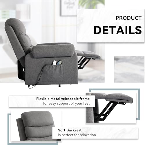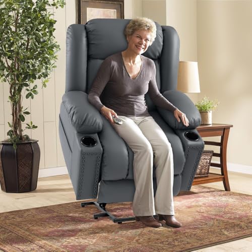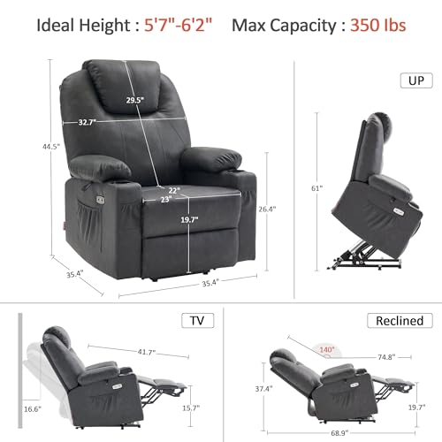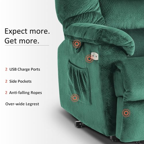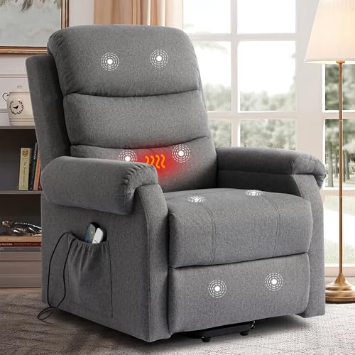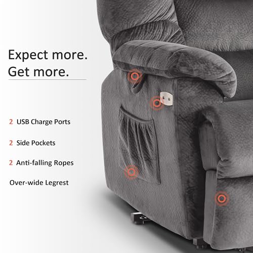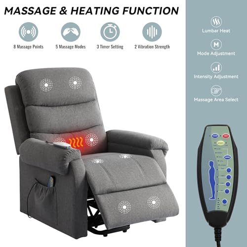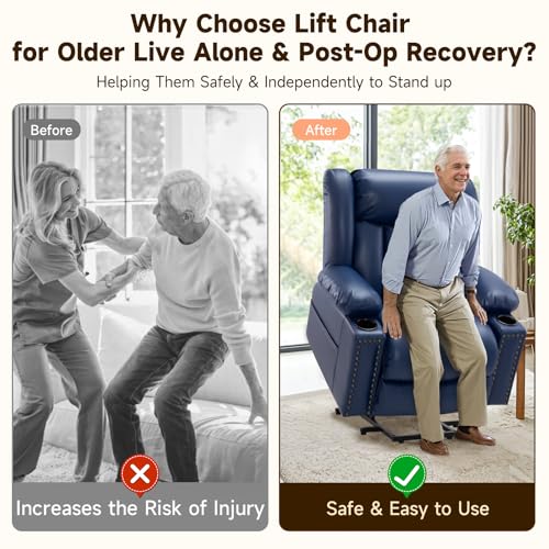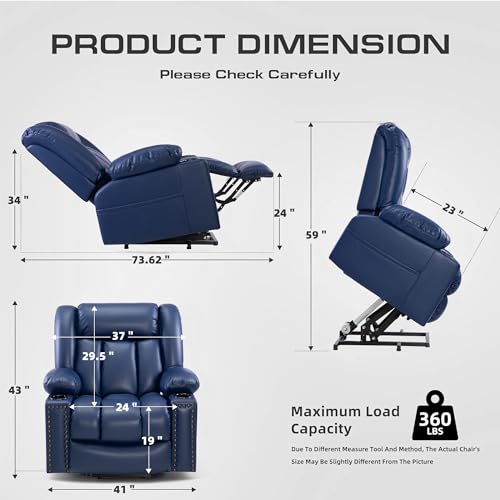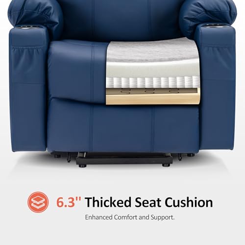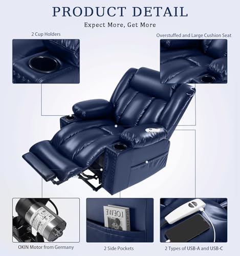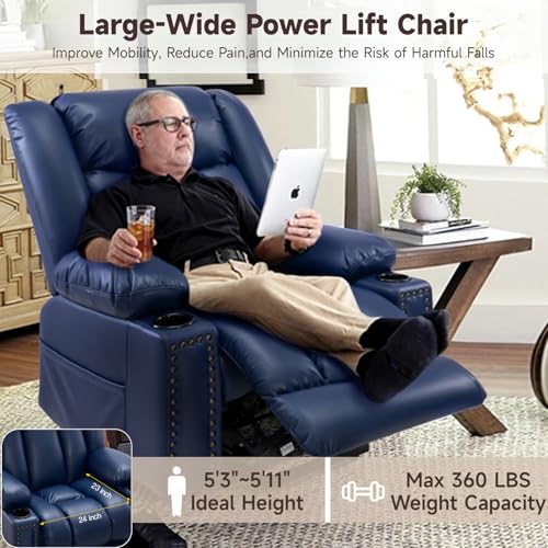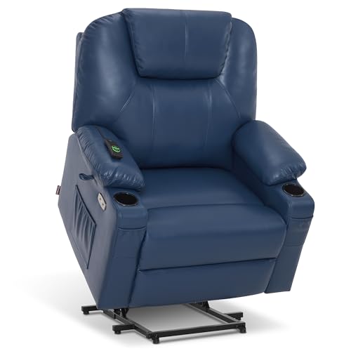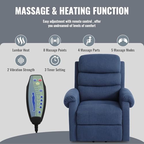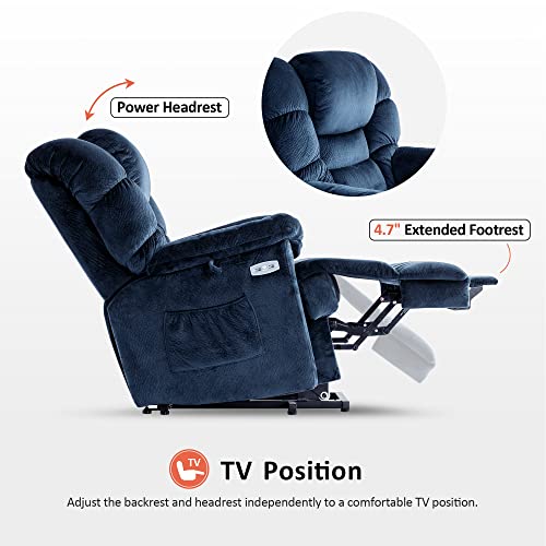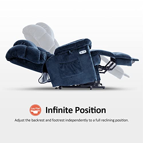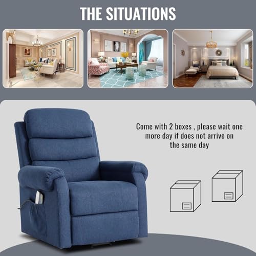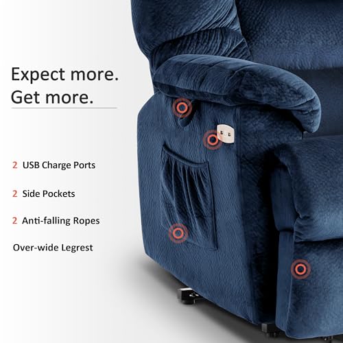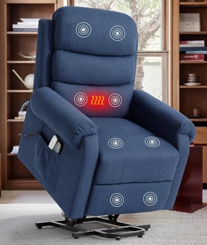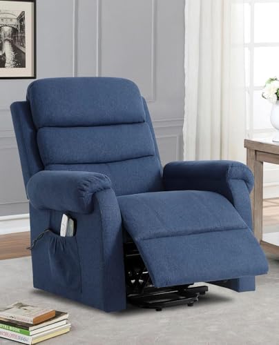 Power Lift Recliner Chair Recliners for Elderly with Heat and Massage Recliner Chair for Living Room with Infinite Position and Side Pocket, USB Charge Port (Dark Blue)