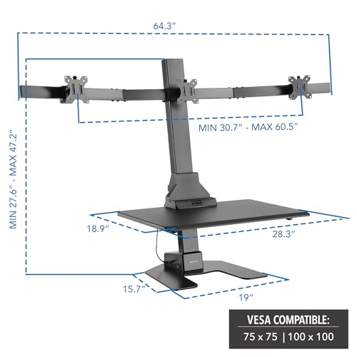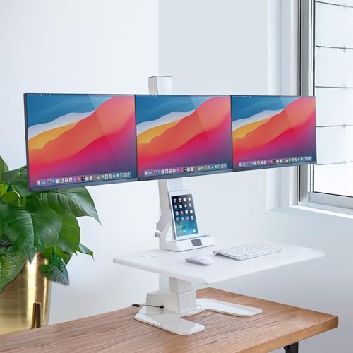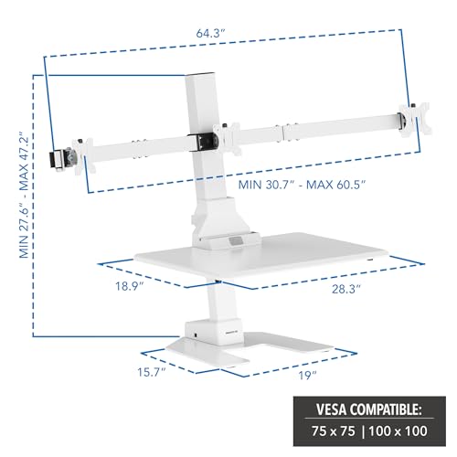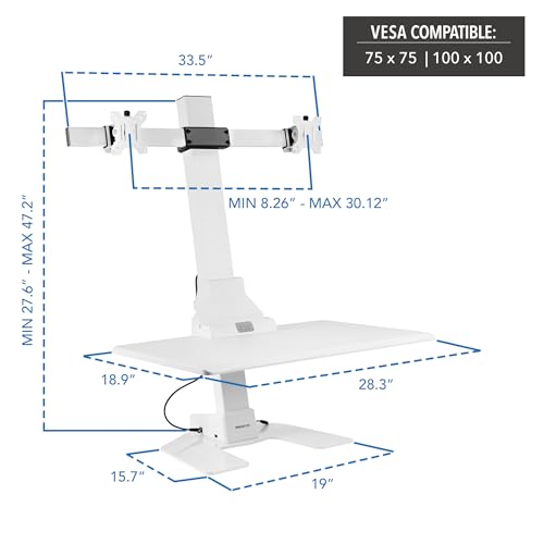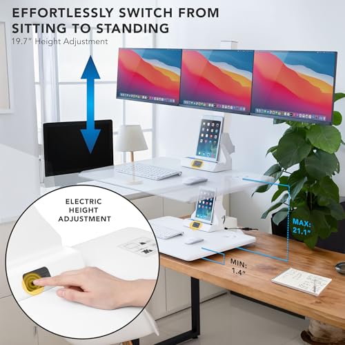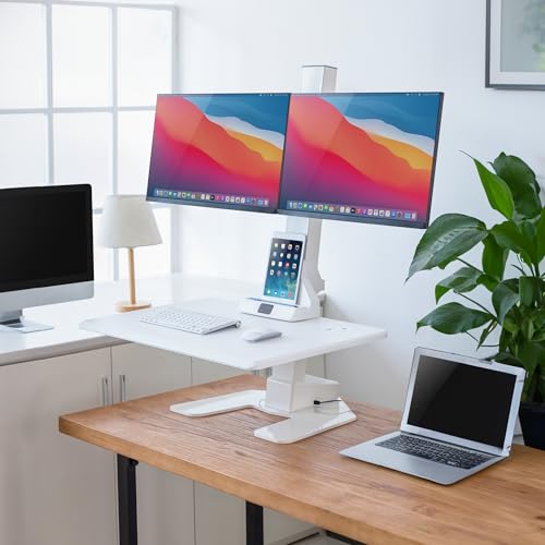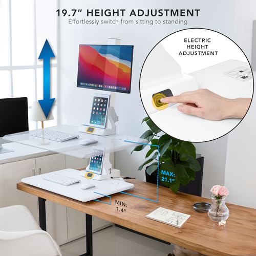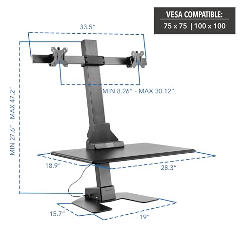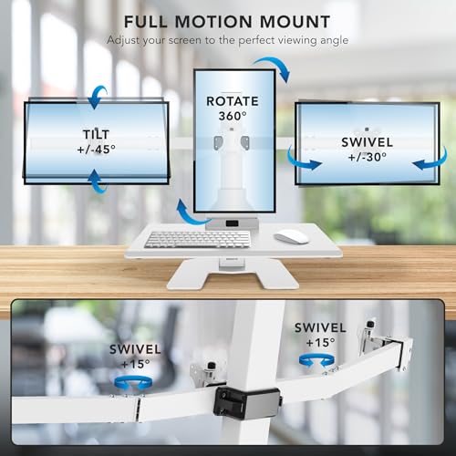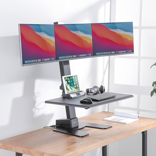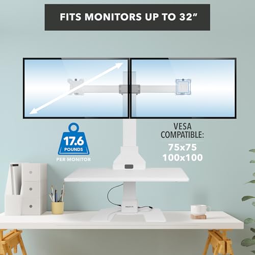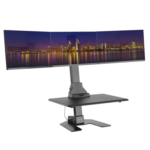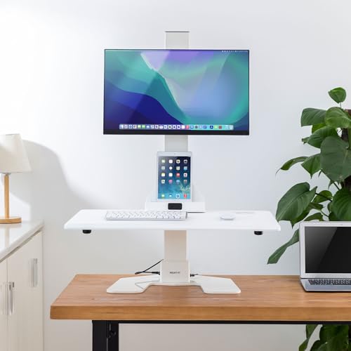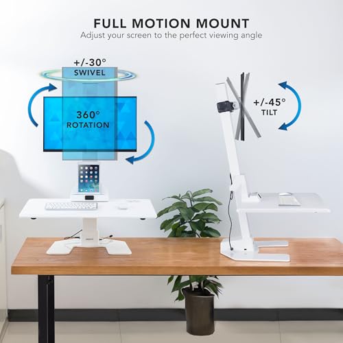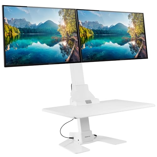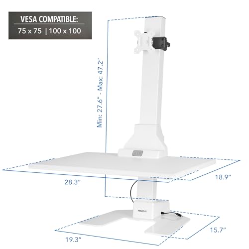 Mount-It! Electric Standing Desk Converter - Motorized Sit-Stand Desk Riser with Monitor Mount, Standup Powered Desktop Lift for Single Monitor up to 32", 28" Wide Keyboard Tray, Adjustable Height